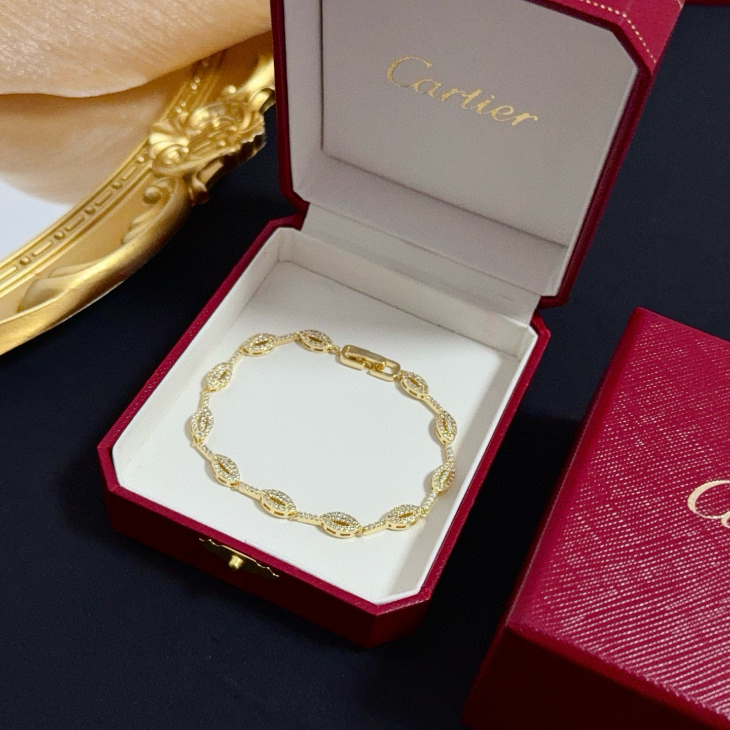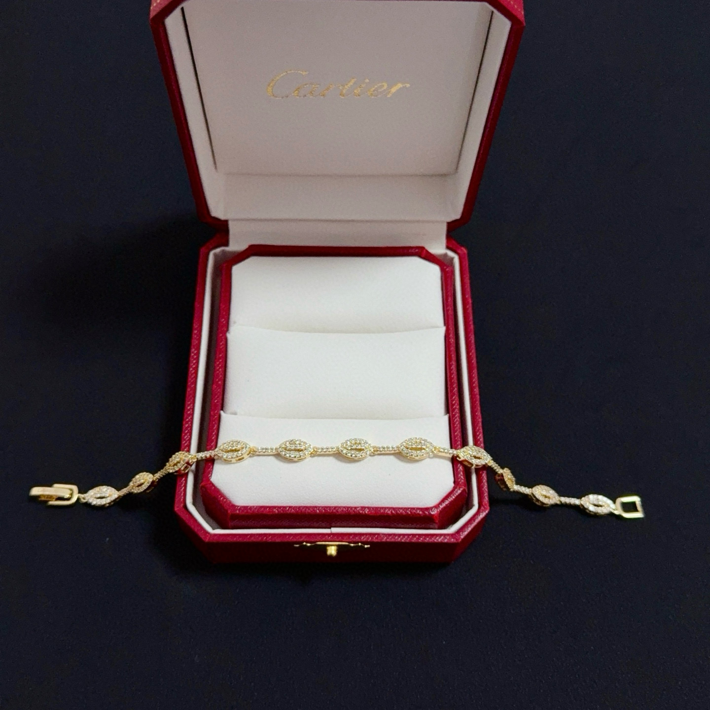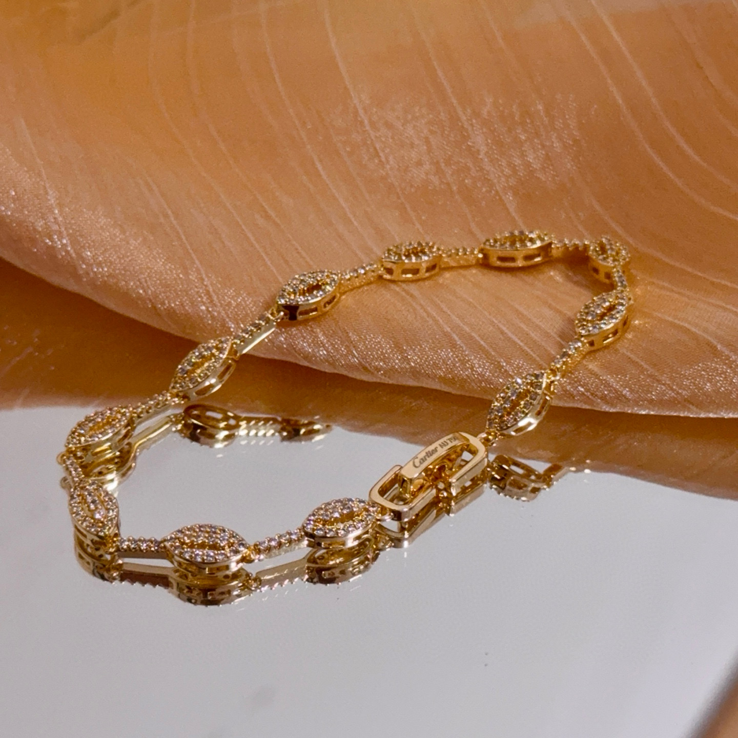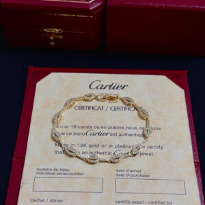 The bracelet closes with a sleek, branded gold clasp (engraved with “Cartier”), ensuring both security and subtle brand identity.