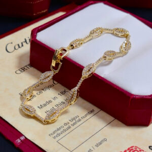 This is a refined 18K yellow gold bracelet from Cartier, featuring a series of interconnected, oval-shaped links—each fully encrusted with pavé-set round diamonds for continuous, luminous sparkle.