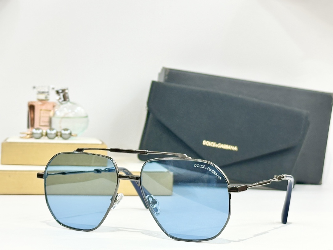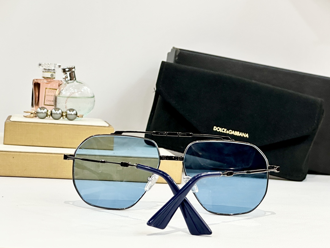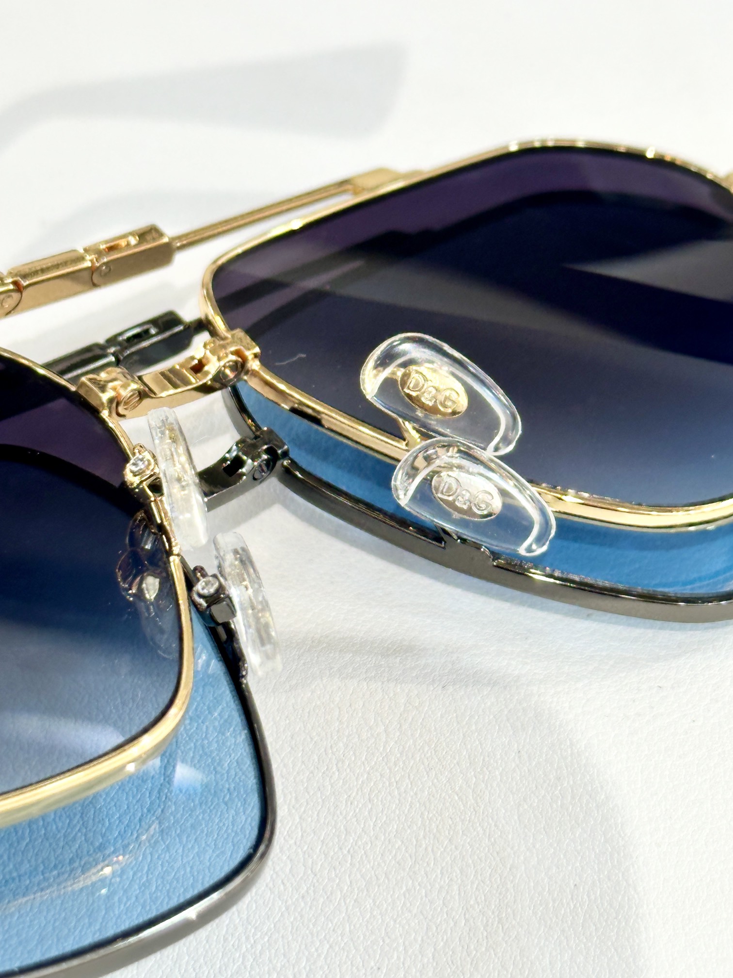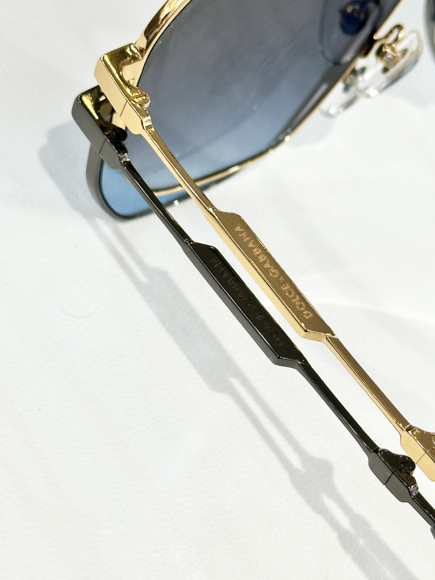 • These are Dolce & Gabbana aviator sunglasses featuring polished metal frames available in styles like black metal with blue lenses and gold metal with gradient gray lenses.