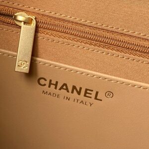 The interior is lined in black fabric, with a slip pocket for small essentials, and displays a “CHANEL MADE IN ITALY” label for authenticity.
