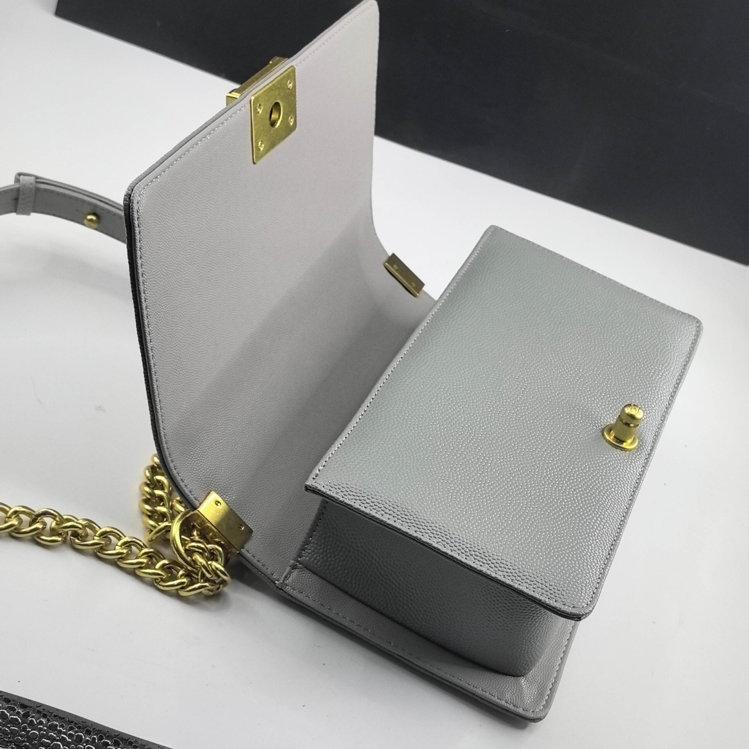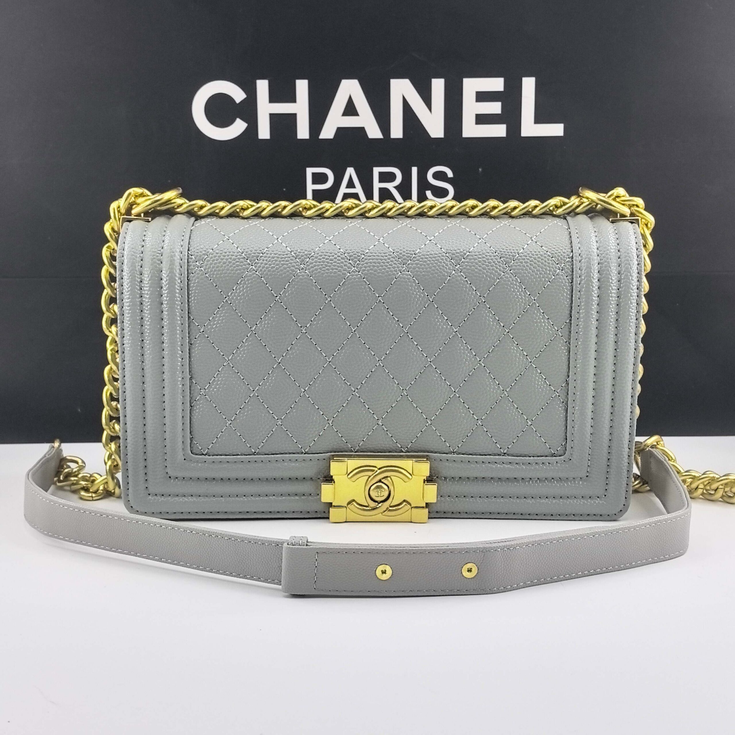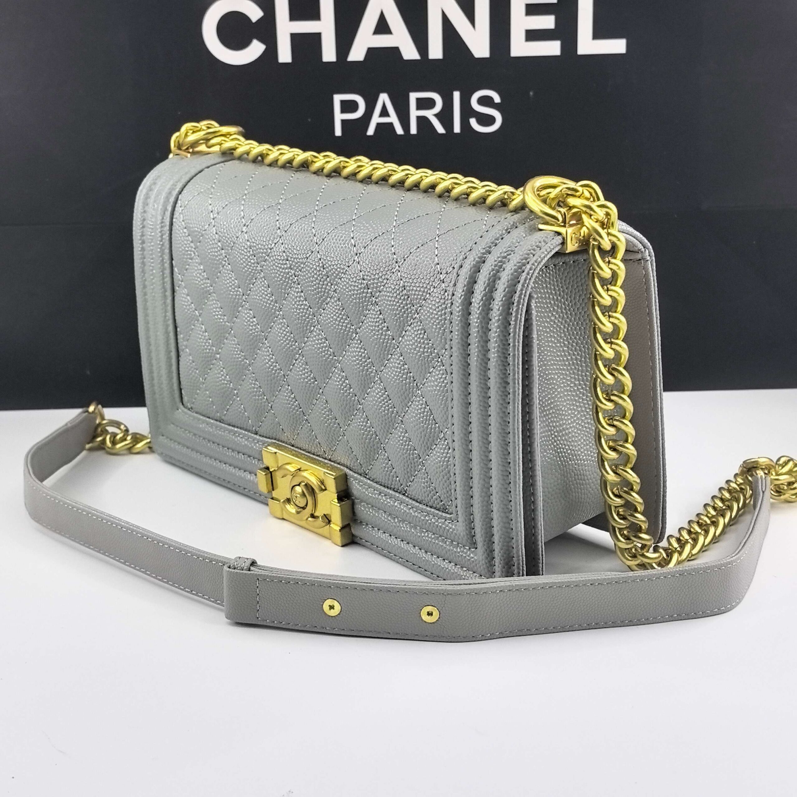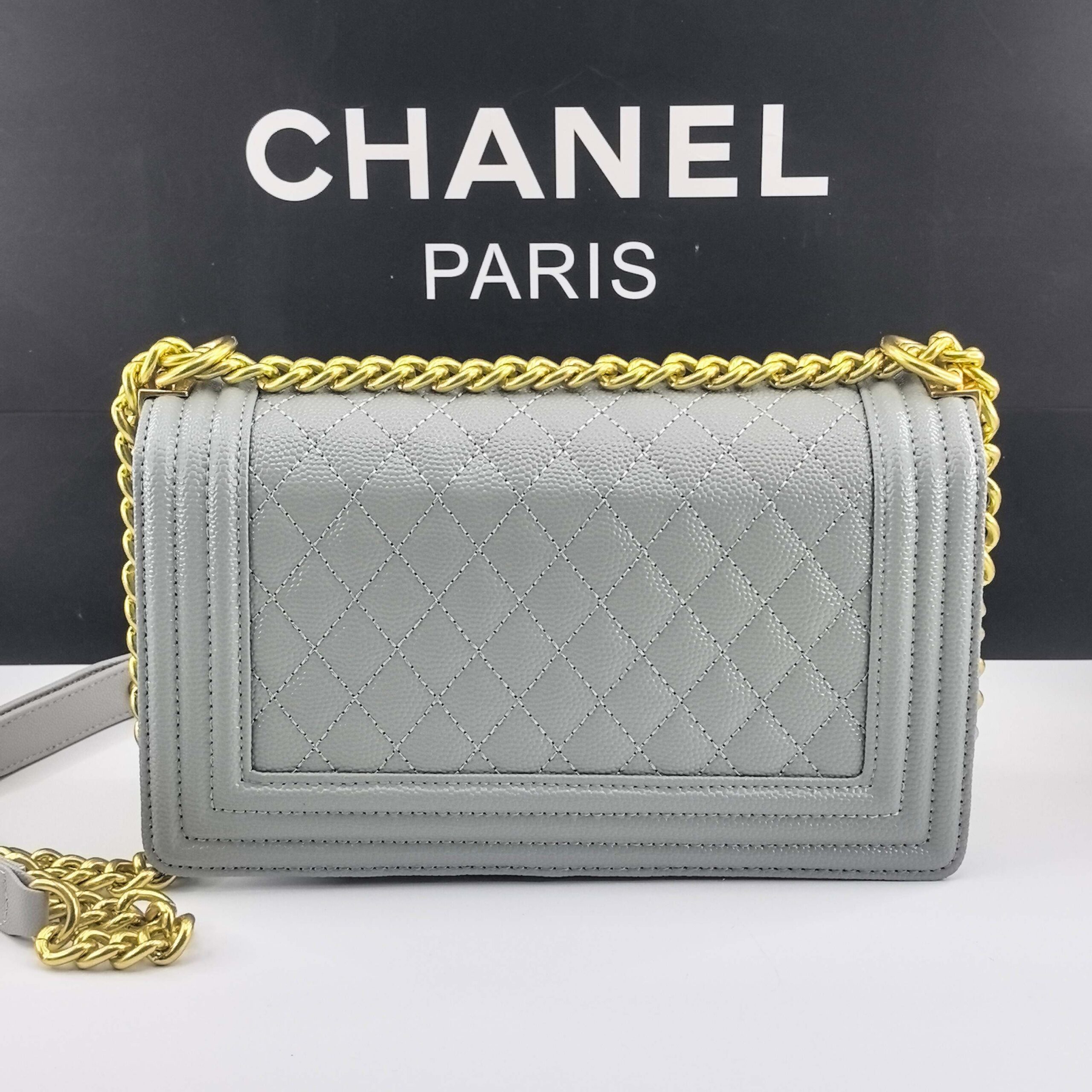 Boy Flap Bag in Light Gray Caviar Leather with Gold-Tone Hardware