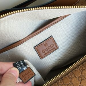 Be the first to review “Brown GG Monogram Suede Shoulder Bag with Olive Green Trim”