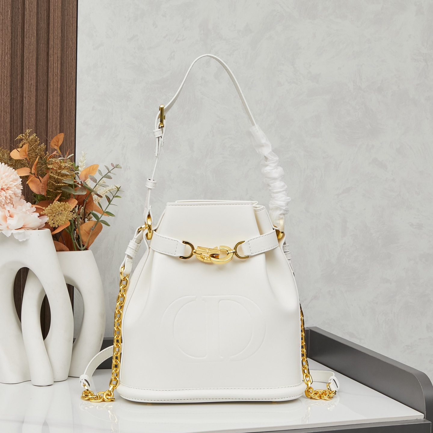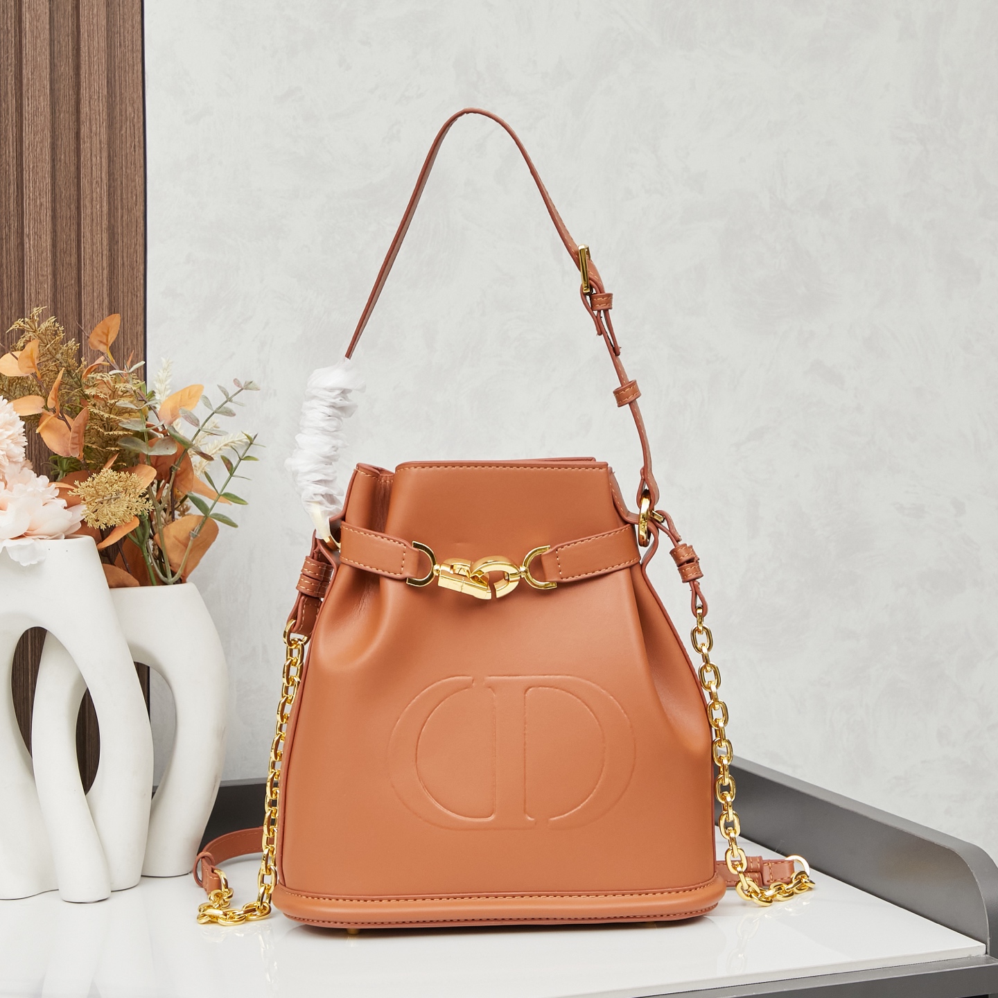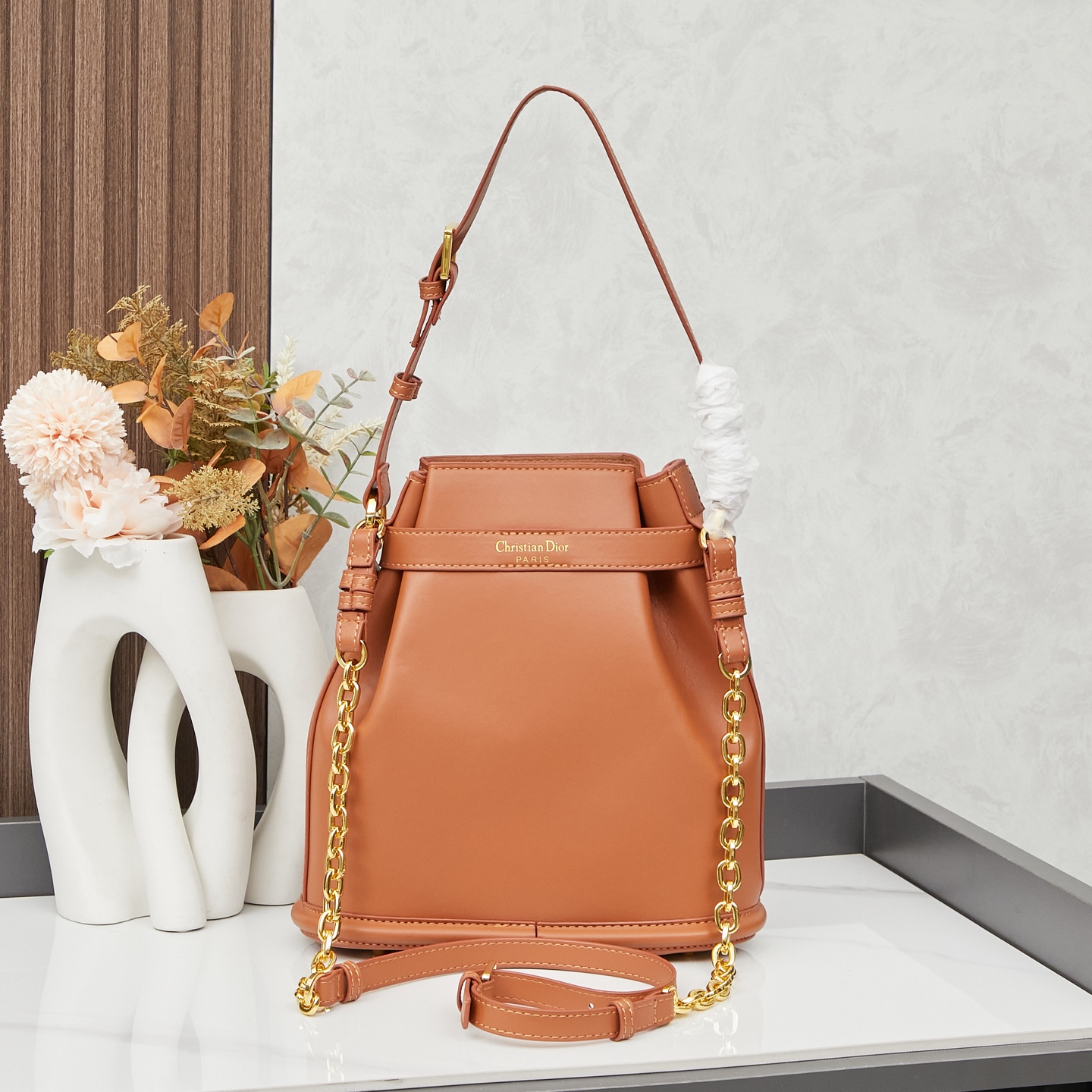 Caro Bucket Bag: Smooth Leather Styles with Signature “CD” Motif & Gold Hardware