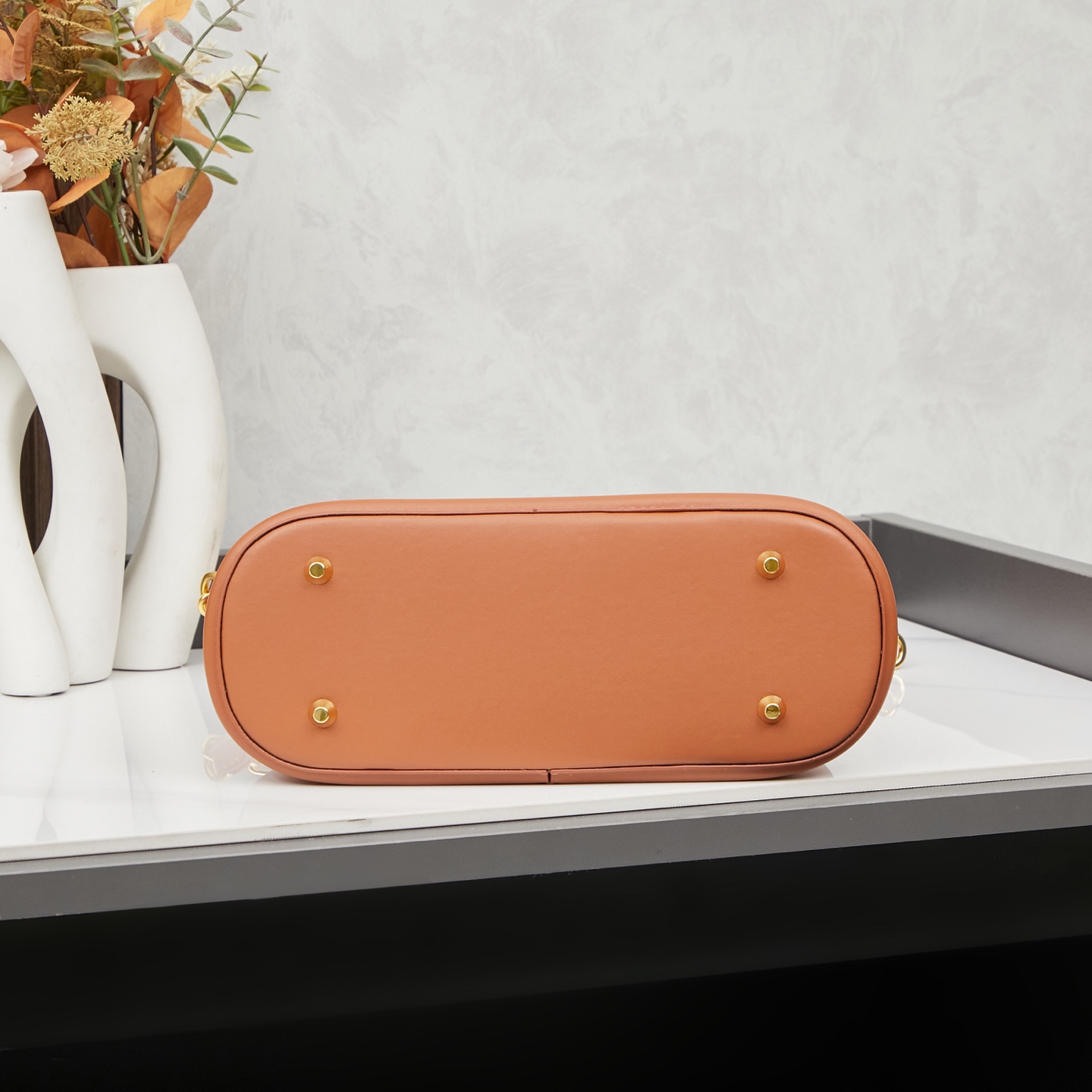 A slim leather top handle plus a chain-and-leather hybrid crossbody strap (adjustable for versatile wear: hand-held, shoulder, or crossbody).