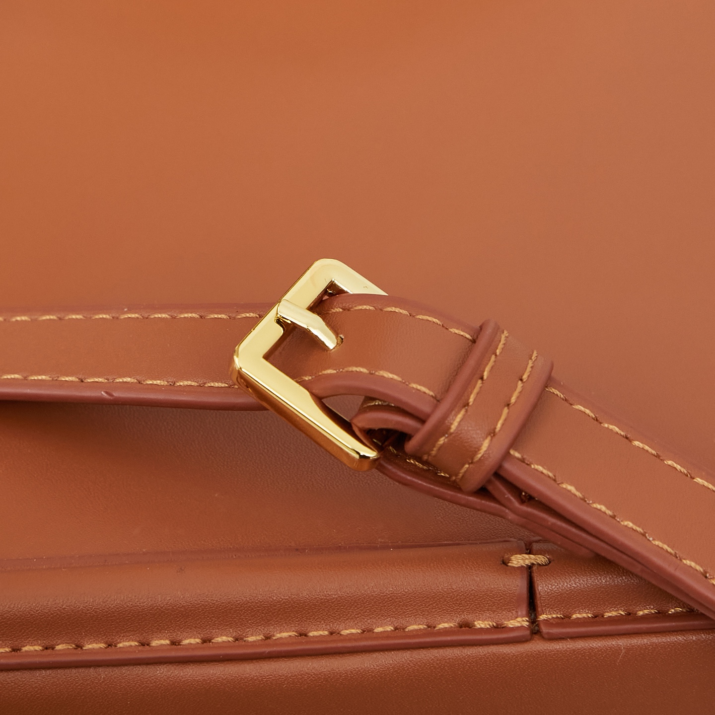 A subtle “Christian Dior PARIS” stamp on the front strap, and four gold-tone feet on the base (to protect the leather).
