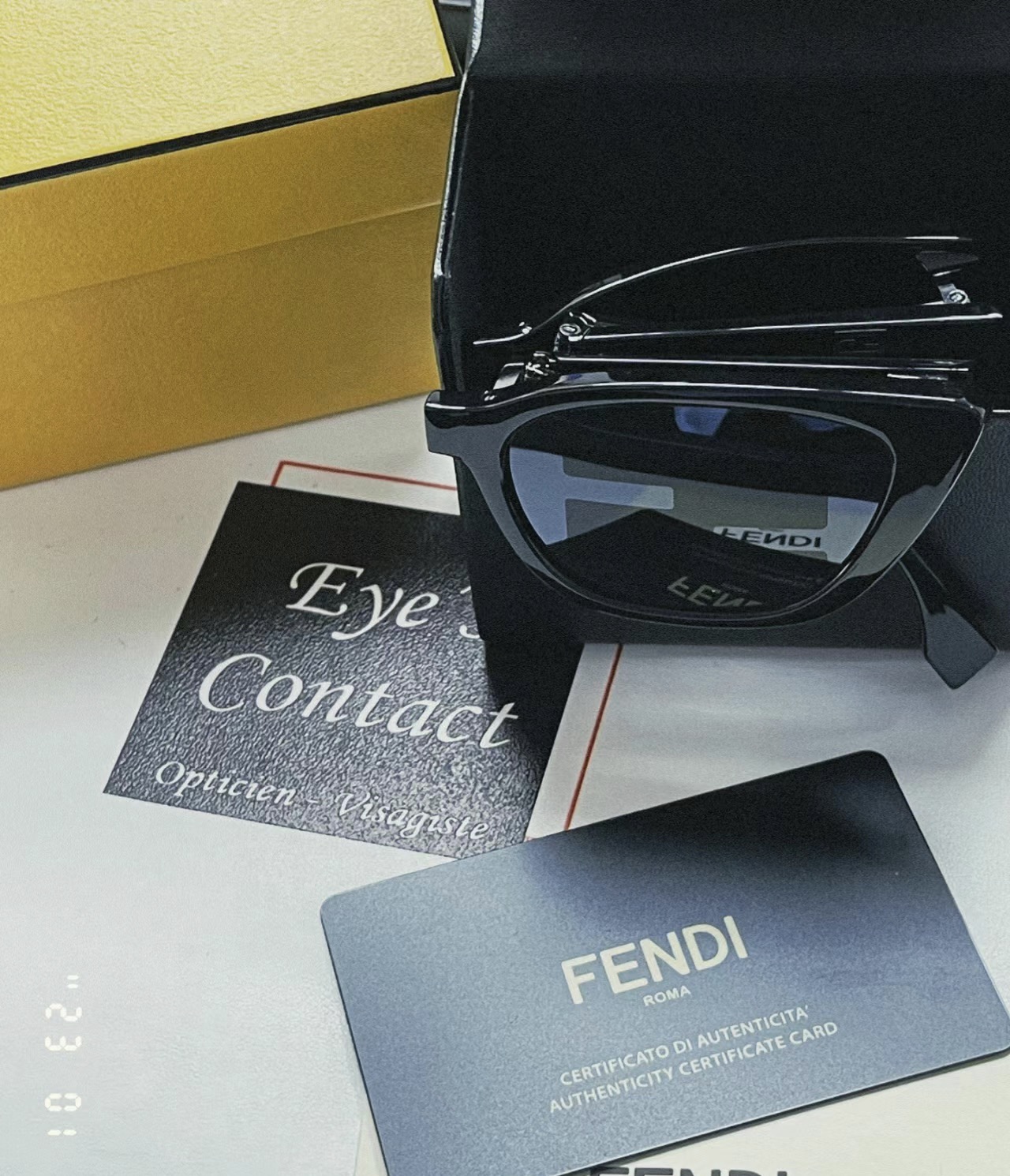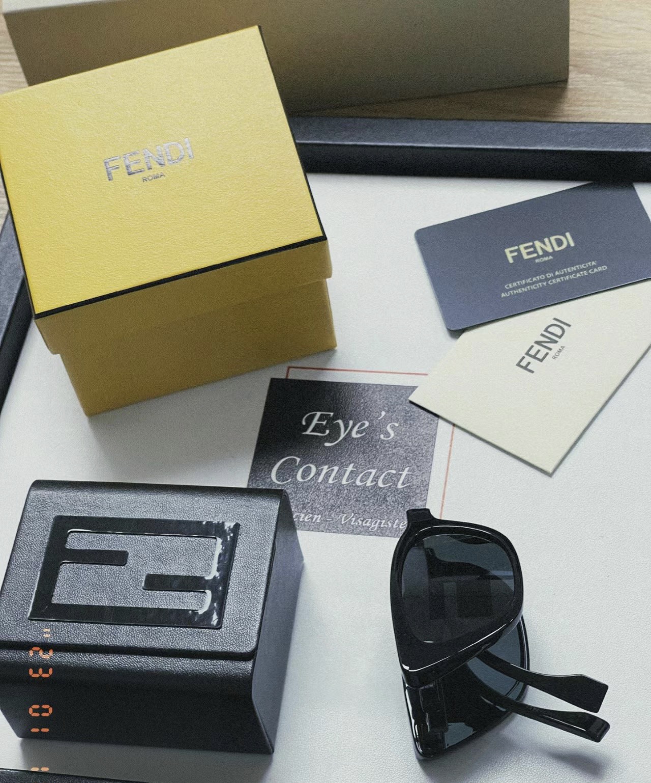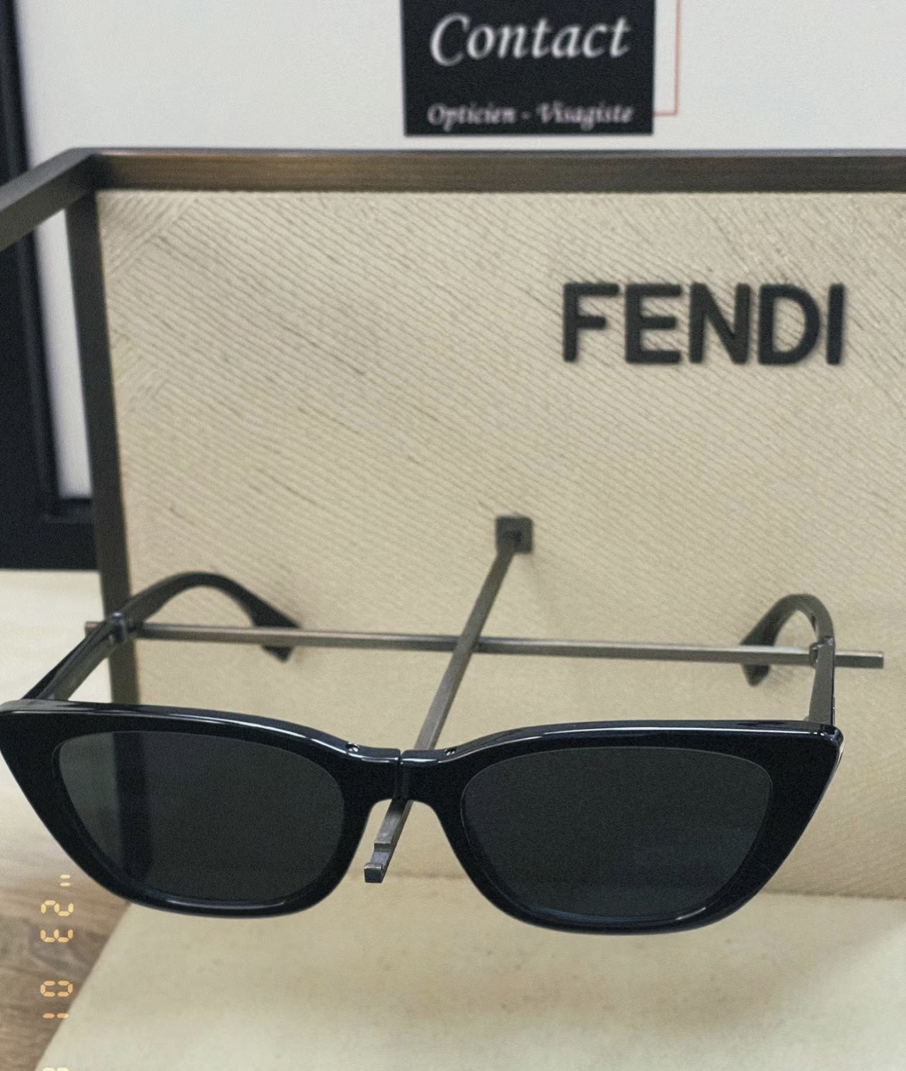 - These are cat-eye sunglasses featuring the brand’s iconic FF logo prominently displayed on the lenses and temple arms.