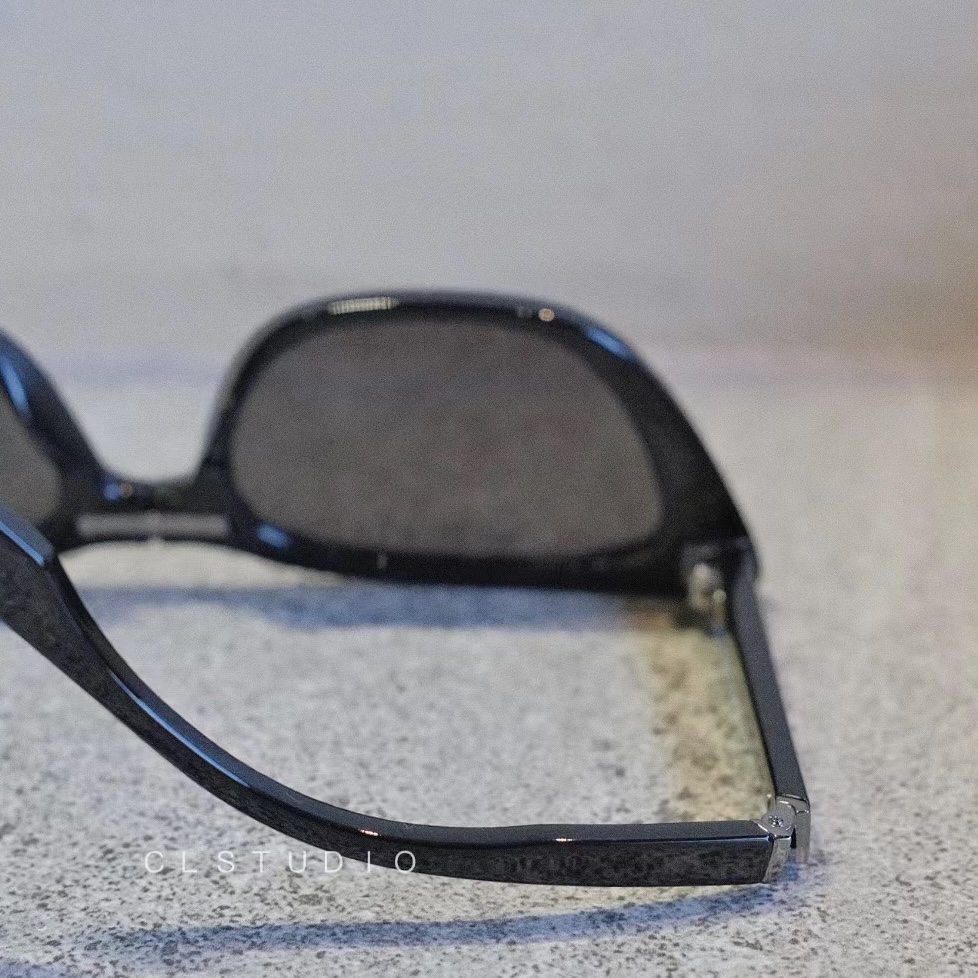 - The sunglasses showcase meticulous craftsmanship, evident in the polished surfaces and precise hardware.