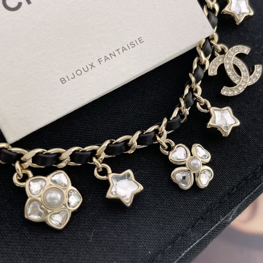 These include the iconic interlocking “CC” logo encrusted with diamonds, star – shaped charms with clear crystals, flower – shaped charms with pearls and crystals, and clover – shaped charms with pearls and crystals.