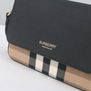 The bag blends Burberry’s classic plaid heritage with refined leather accents—making it a versatile choice for both casual outings and elevated everyday looks.