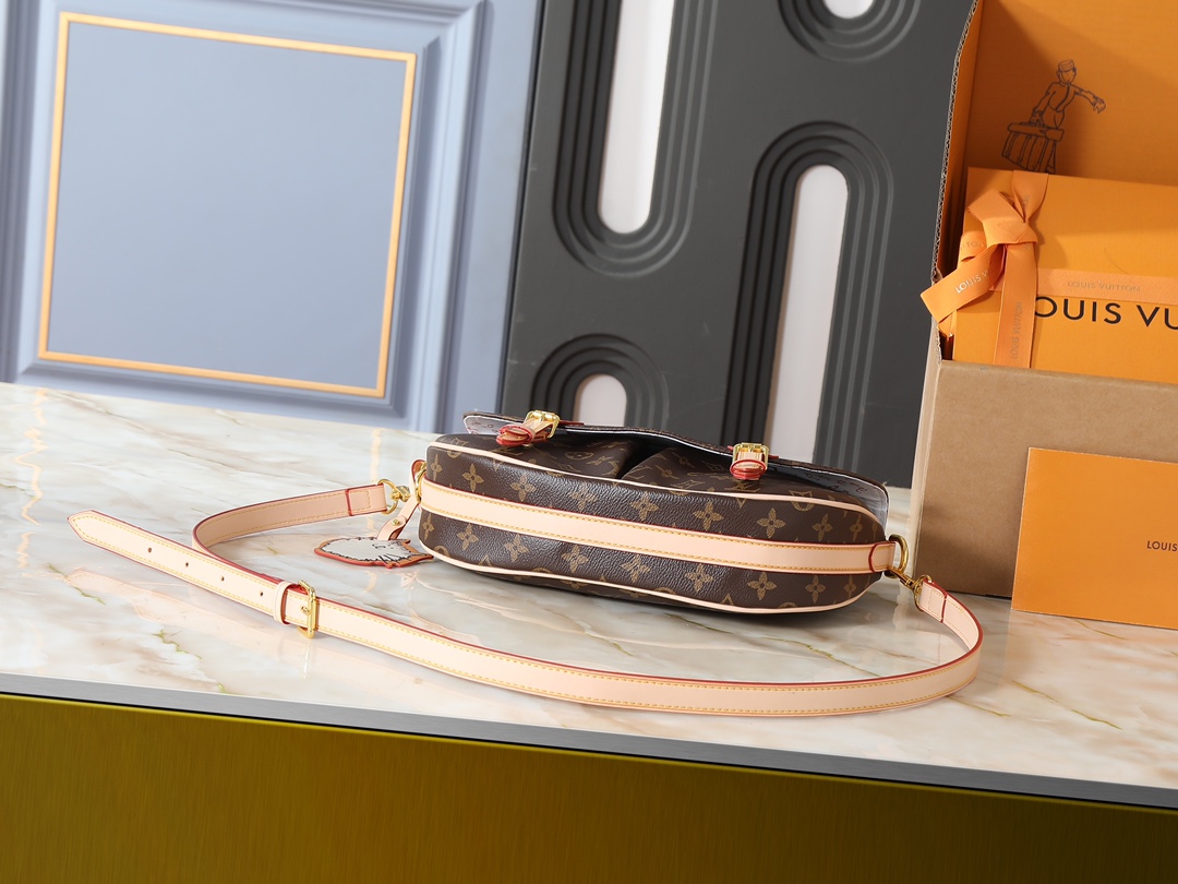 • Timeless saddle shape: A curved silhouette with gold-tone buckle hardware (a signature LV design element)