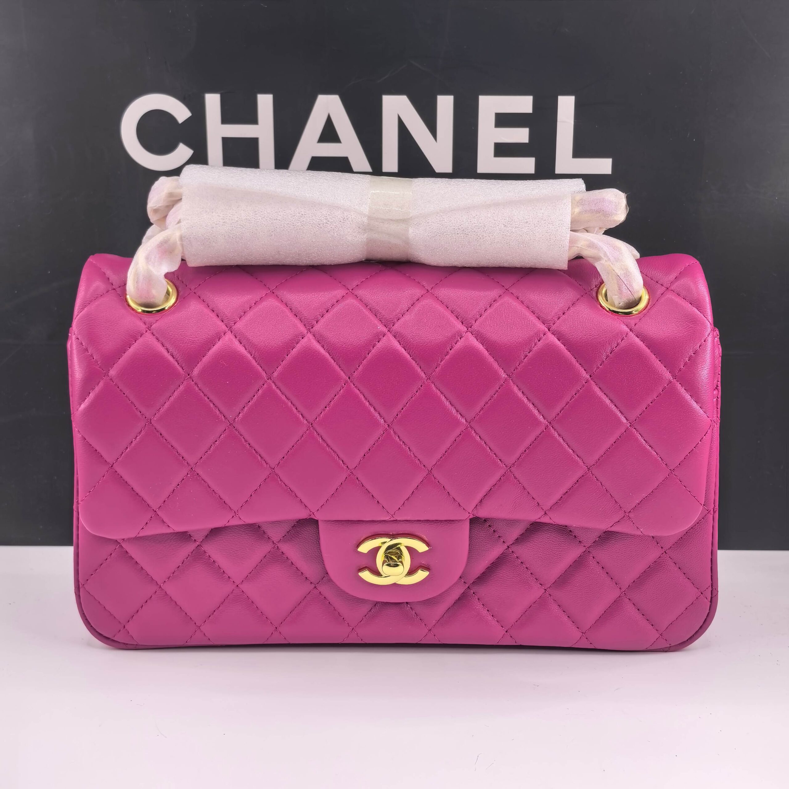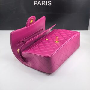 Pink Style: Made with vibrant magenta lambskin (also quilted), this version pairs the bold hue with shiny gold-tone hardware.