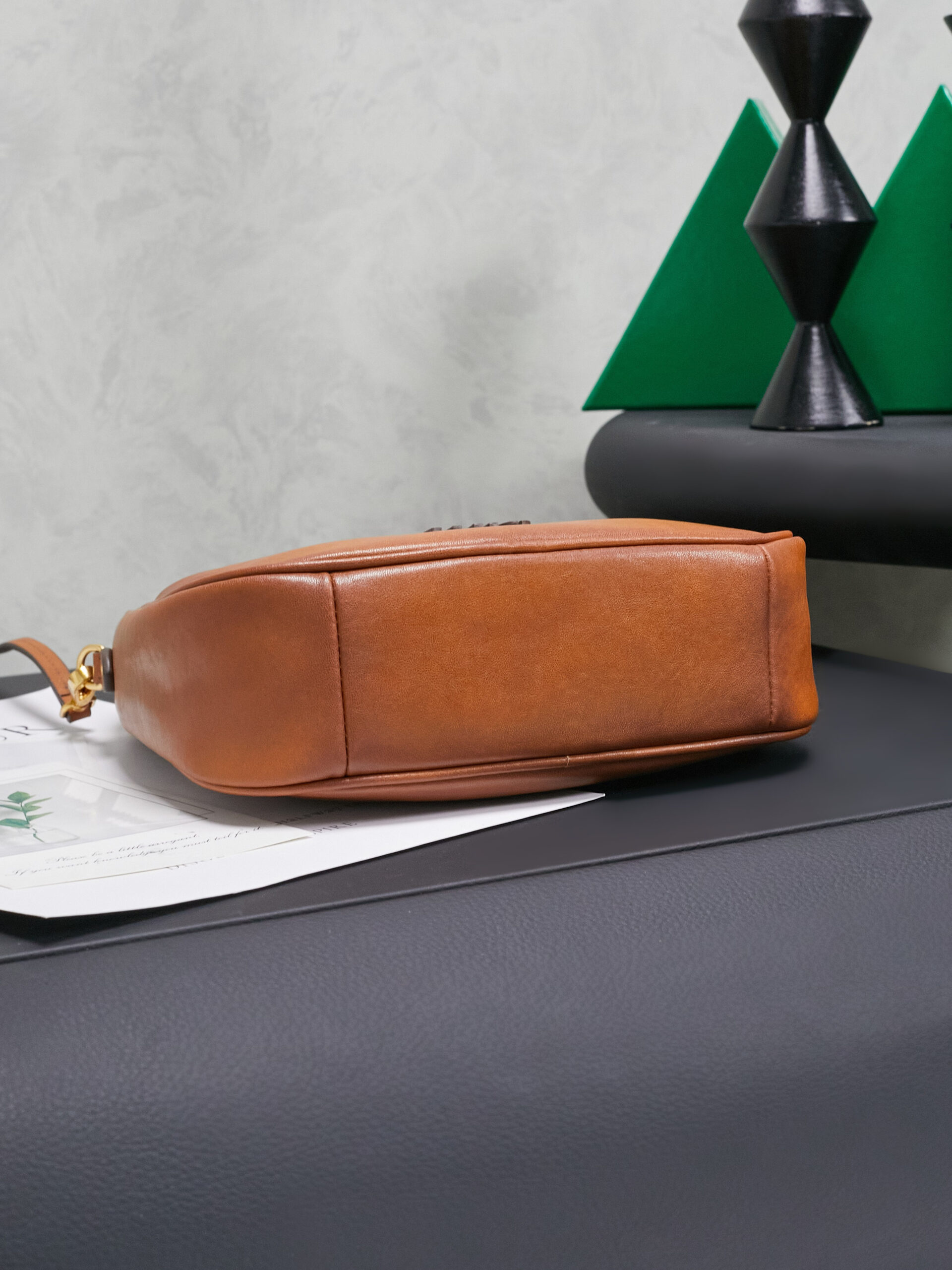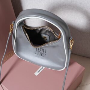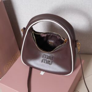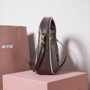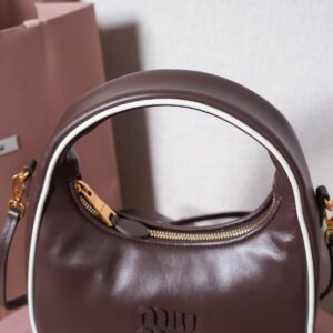 This Miu Miu crescent hobo bag blends playful charm with premium craftsmanship, crafted from supple tan leather (a soft, warm material that ages to a rich patina).