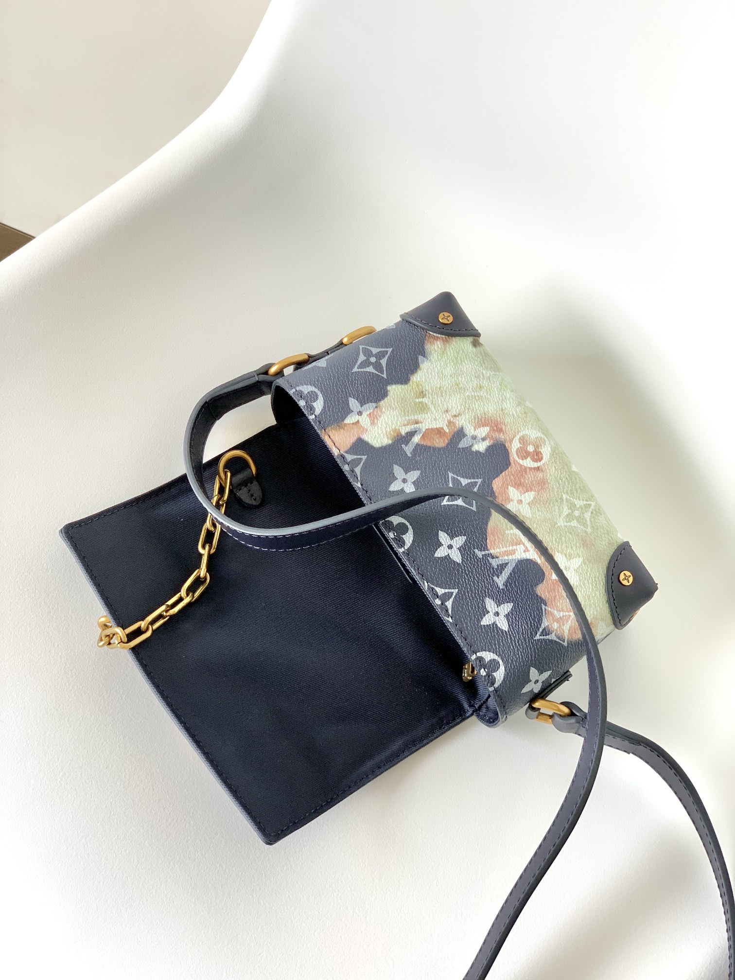 Gold-tone metal hardware (including a signature LV twist-lock closure and chain accents)