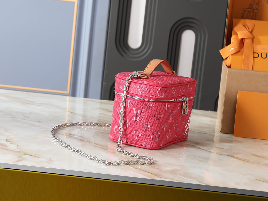Vibrant pink monogram version: Crafted from coated canvas (featuring the iconic LV monogram in tonal white stitching) in a bold pink hue.