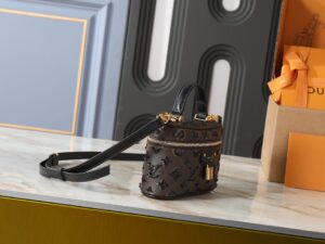 These are Louis Vuitton cube-shaped crossbody bags—compact, structured accessories available in two distinct designs: