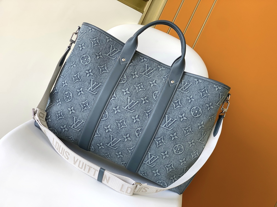 Blending casual denim texture with classic LV design, this tote balances versatility and style—ideal for daily use, shopping trips, or light travel.r handles + adjustable webbing shoulder strap (with “LOUIS VUITTON” branding)
