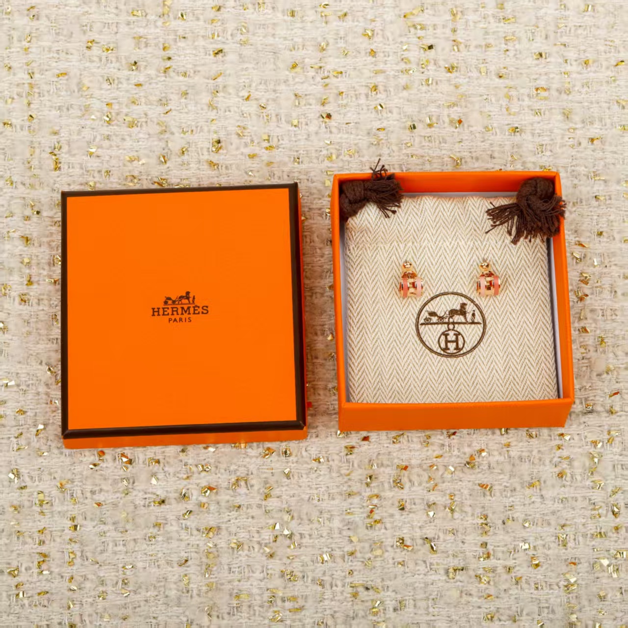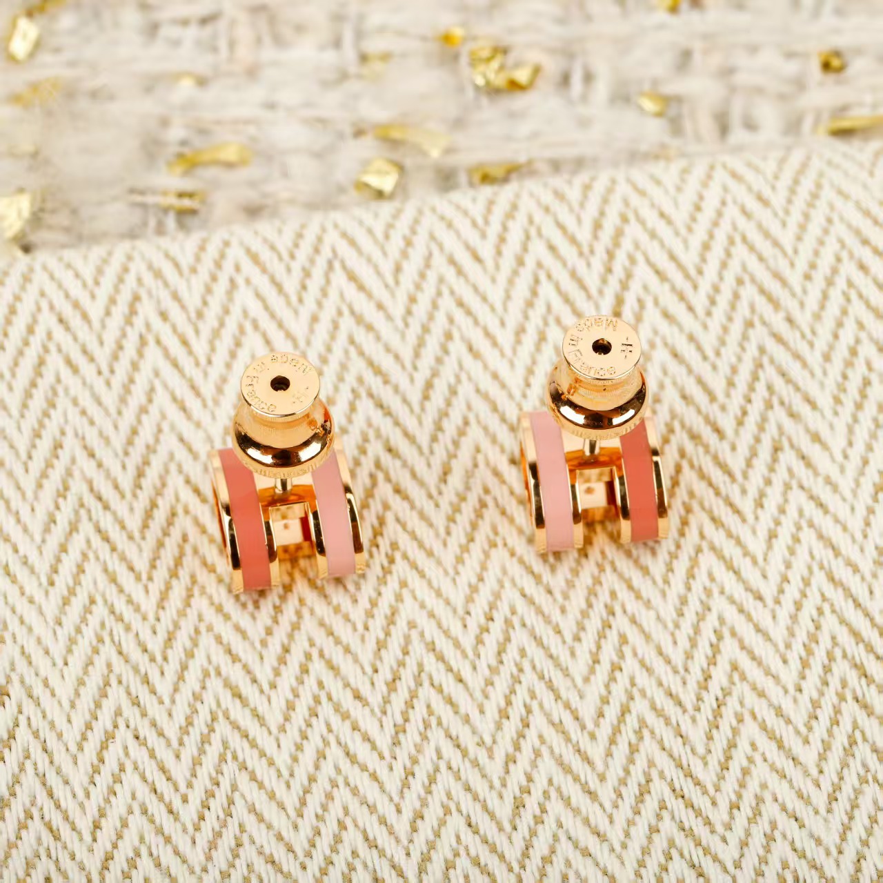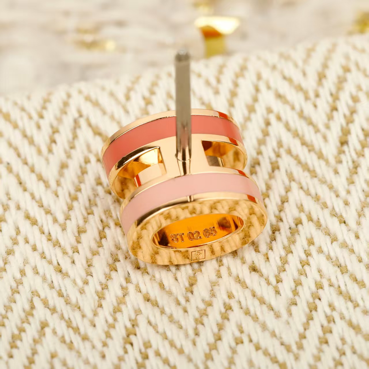 They feature the iconic “Pop H” design, crafted in a rose gold – toned metal with dual – tone pink enamel (light pink and coral pink) detailing.