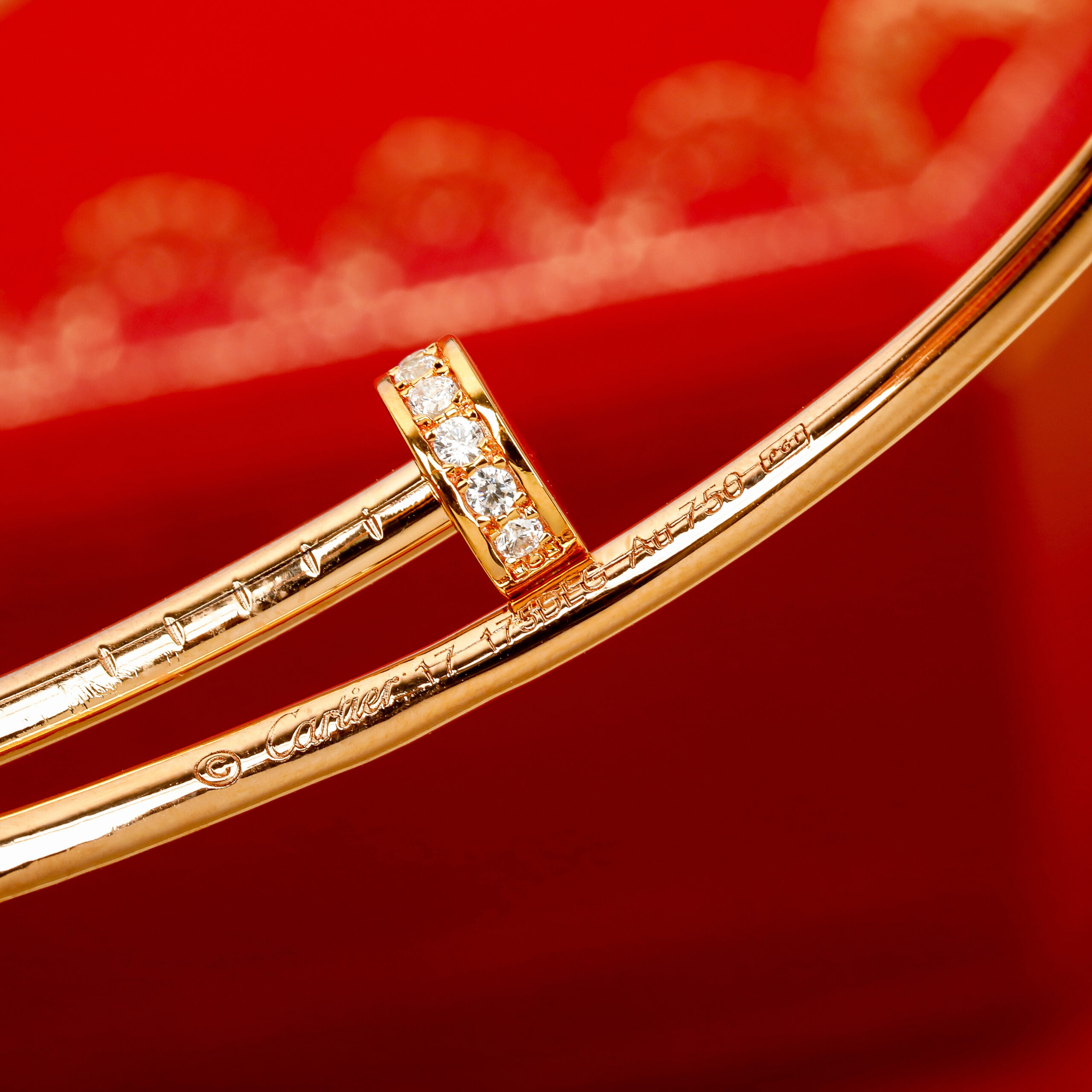 The design balances sleek, minimalist metalwork with subtle, sparkling detailing, embodying Cartier’s refined luxury aesthetic.