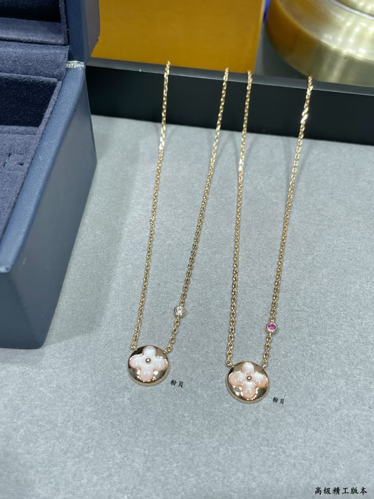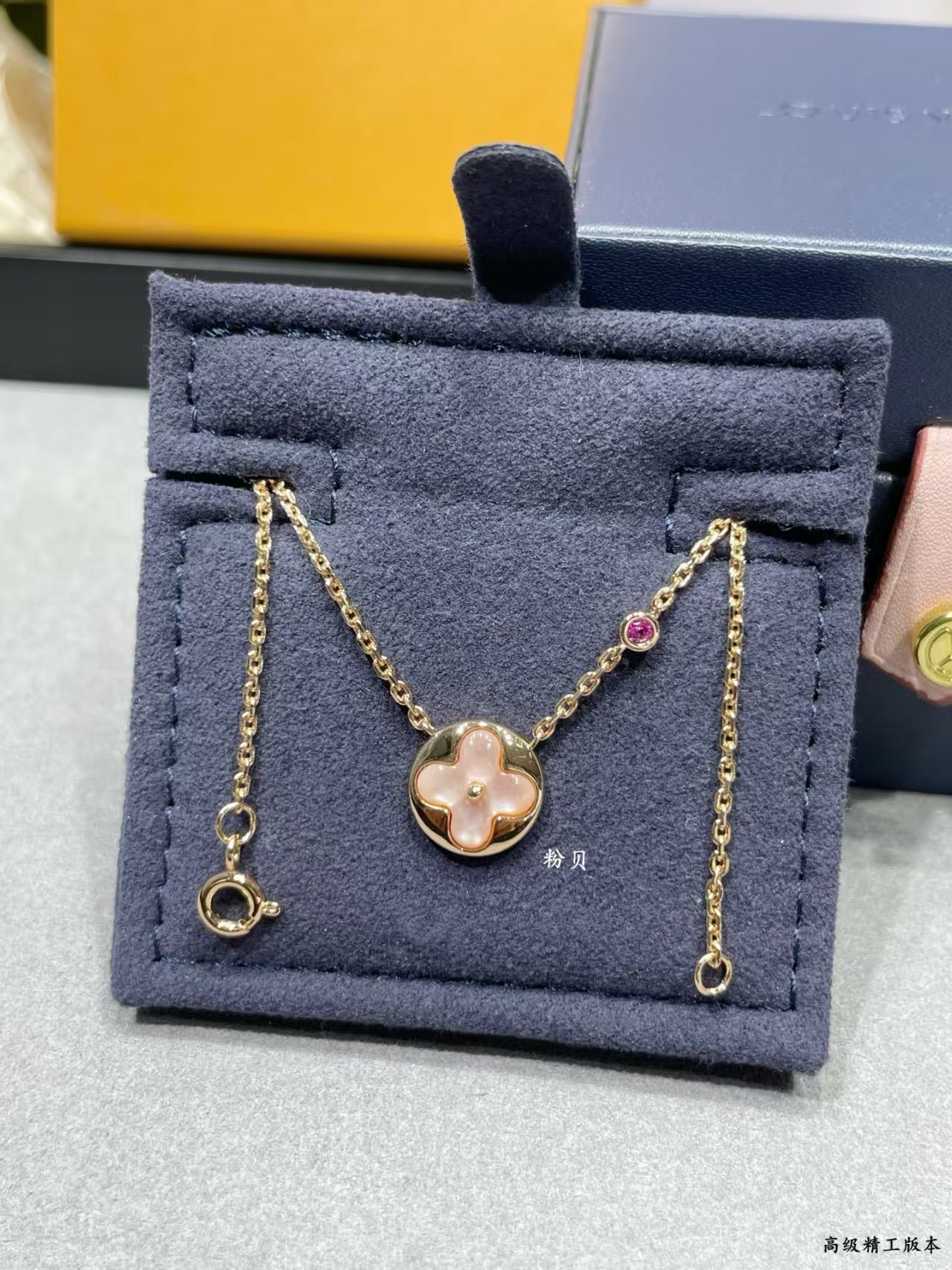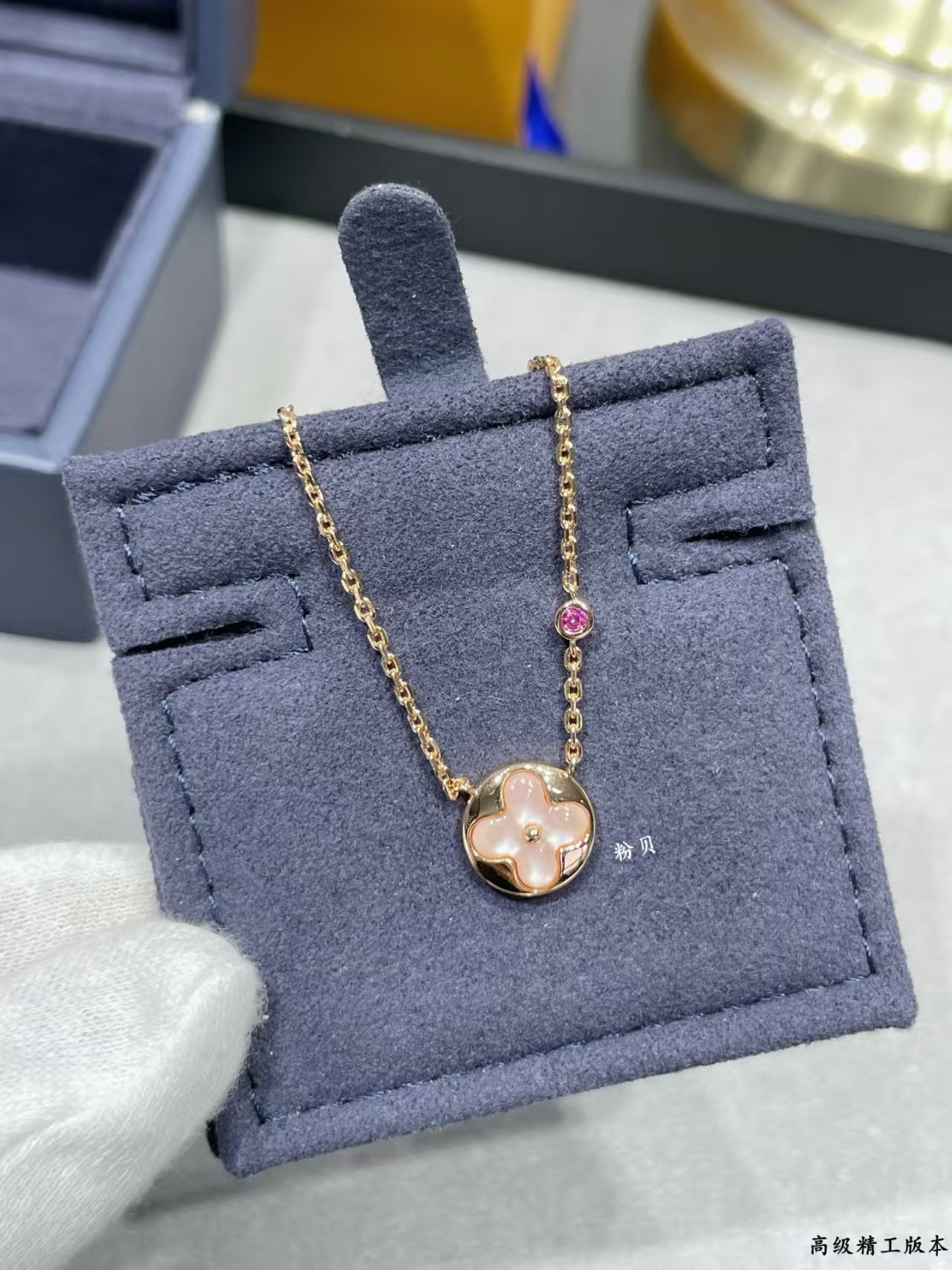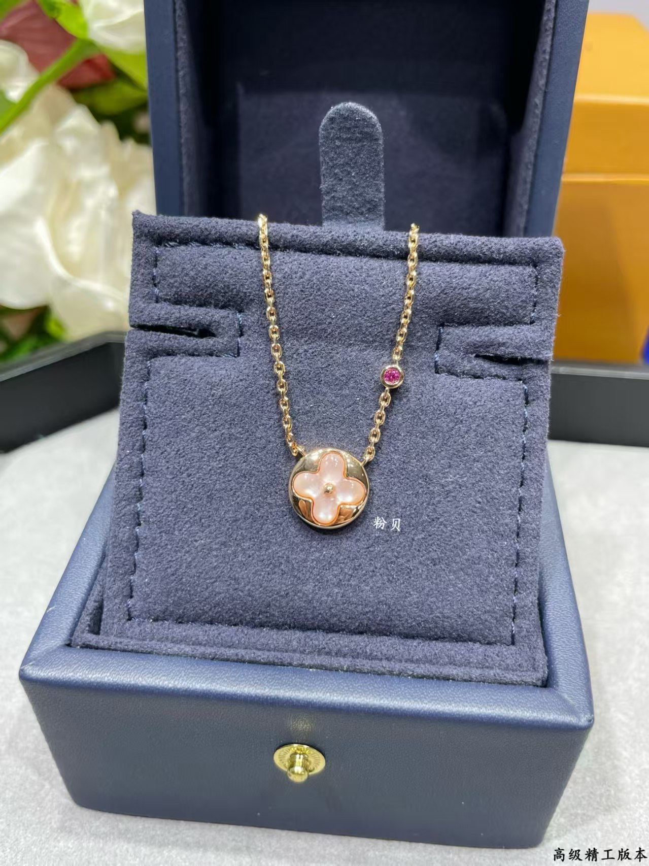 It is presented in a sophisticated navy blue jewelry box, emphasizing its high – end craftsmanship.