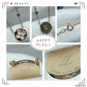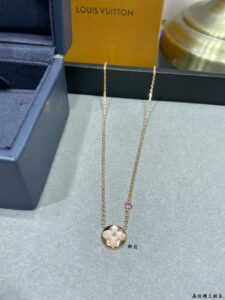 The product in the pictures is an elegant necklace featuring a central floral motif crafted from pink mother – of – pearl, set in a rose gold – toned metal.