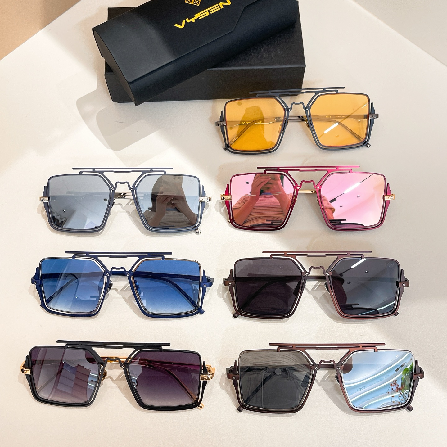 - Presented with Vysen’s signature black packaging, including a box and a cylindrical case, these sunglasses exemplify the brand’s commitment to avant-garde design and meticulous craftsmanship.