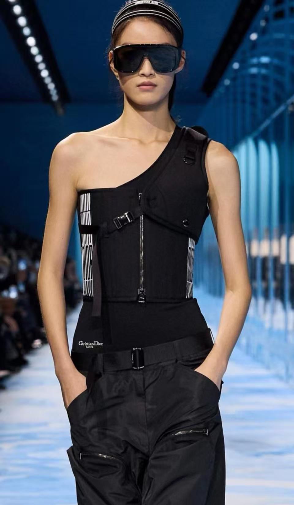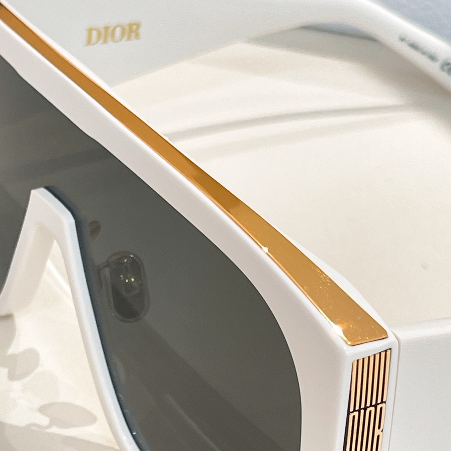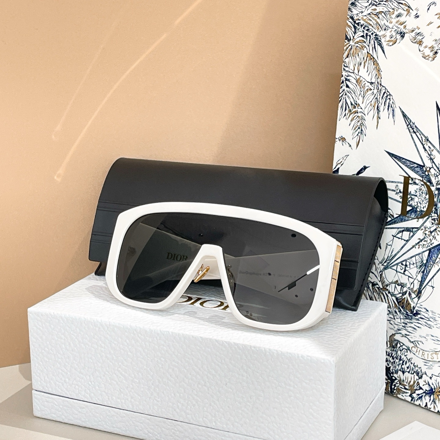 - These are Dior Graphique M2U shield sunglasses featuring a bold, oversized frame design. Available in styles such as white with gold accents and black with gold detailing, the frames are crafted from high-quality acetate.