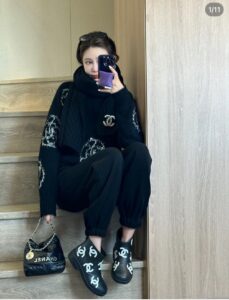 Its standout feature is the 3D raised double-C logo embellishment (in black with white dot details for the cream version, or white/metallic for the black version), adding a luxe, tactile touch.