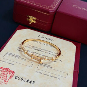 Presented in Cartier’s signature red leather gift box and accompanied by an authenticity certificate, the piece embodies Cartier’s legacy of bold, avant-garde design.