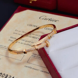 This is an iconic Juste un Clou bangle from Cartier, crafted in polished 18K yellow gold.