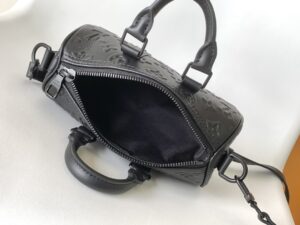 Key details include:Compact travel-inspired design (21 x 12 x 9 cm) – a scaled-down version of LV’s iconic Keepall duffel