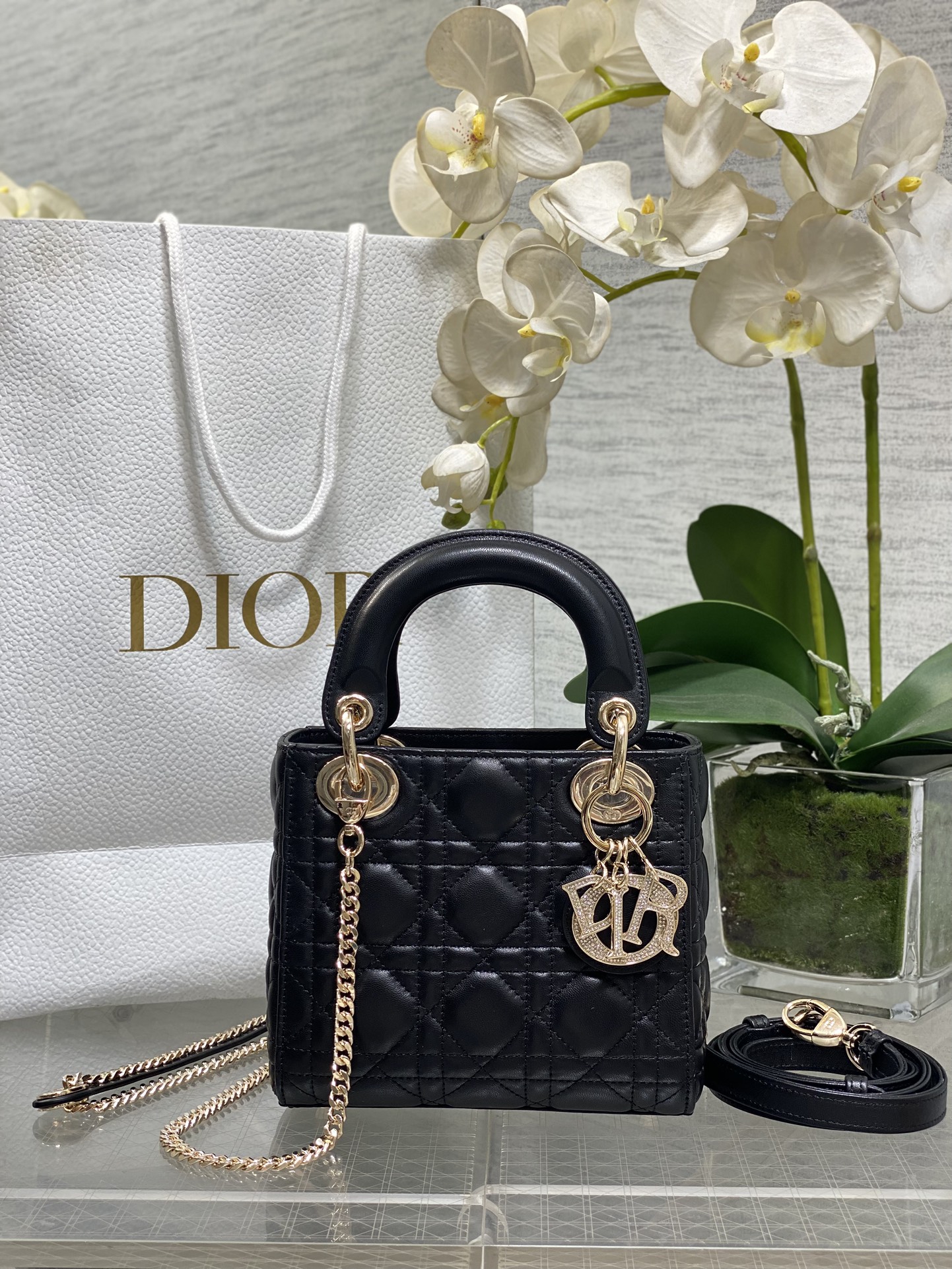 Lady D-Lite Mini Bag in Black Quilted Leather with Crystal-Embellished “D.I.O.R” Charm