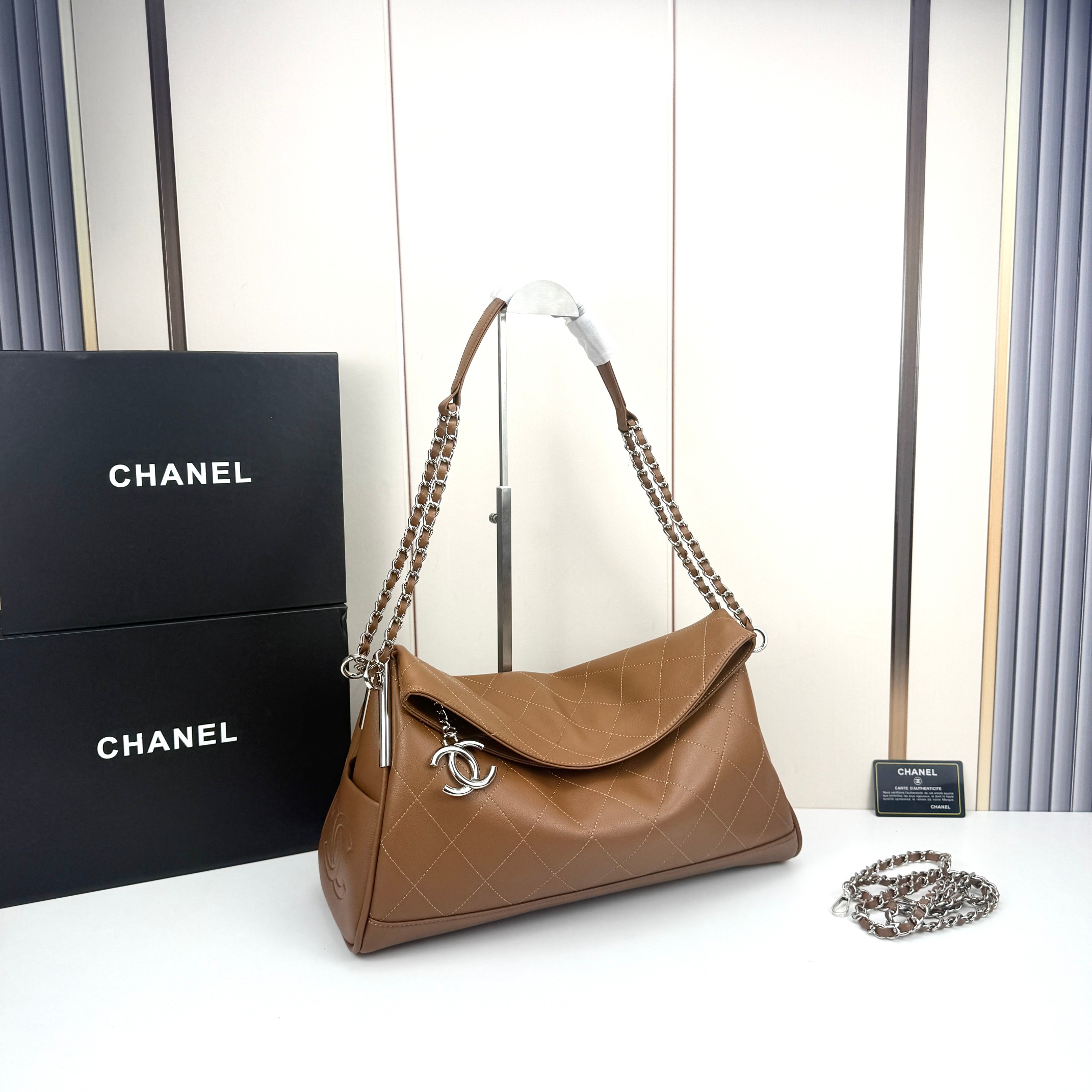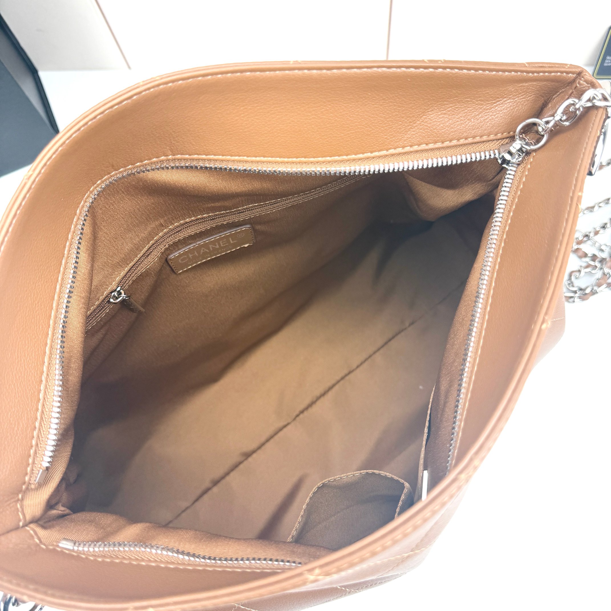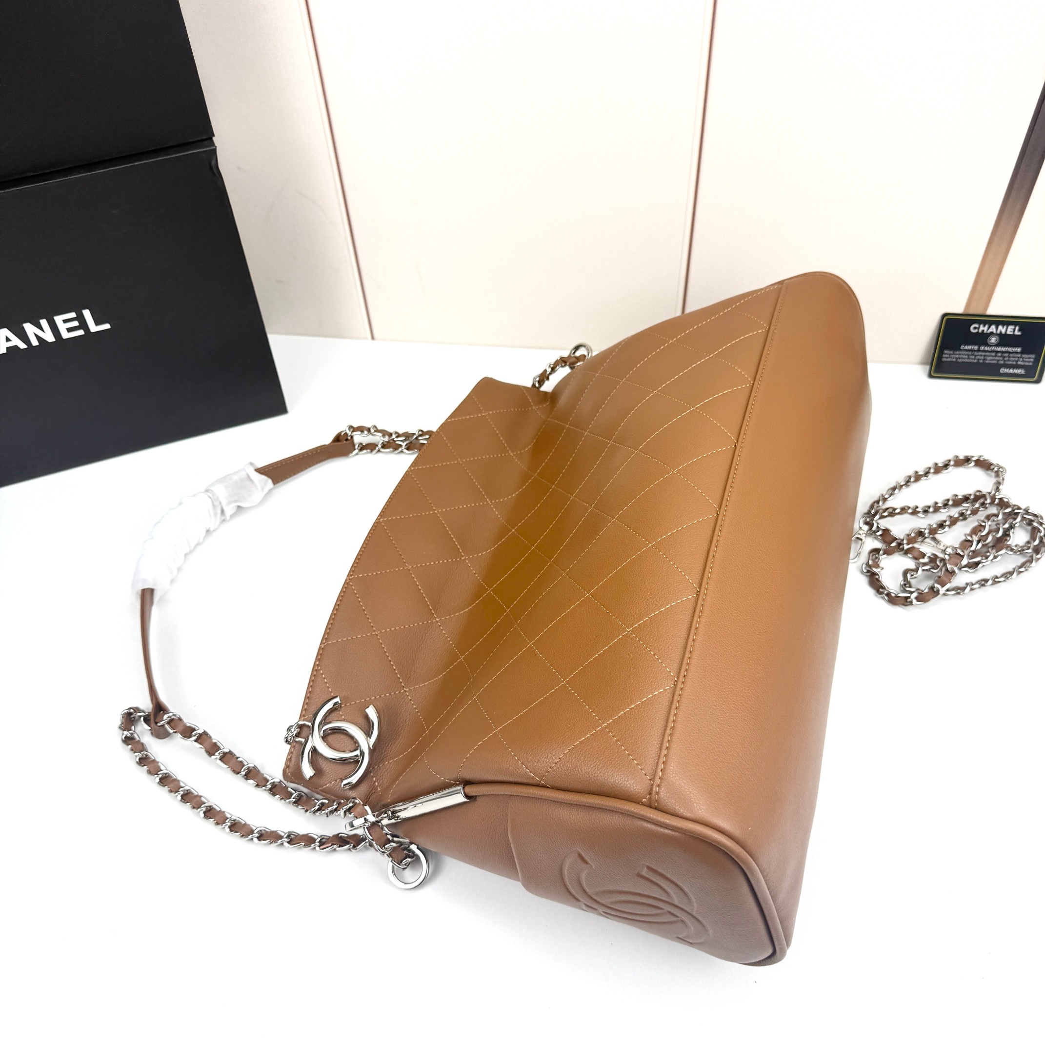 This piece balances Chanel’s iconic elegance with everyday functionality, making it a staple for both casual and elevated outfits.