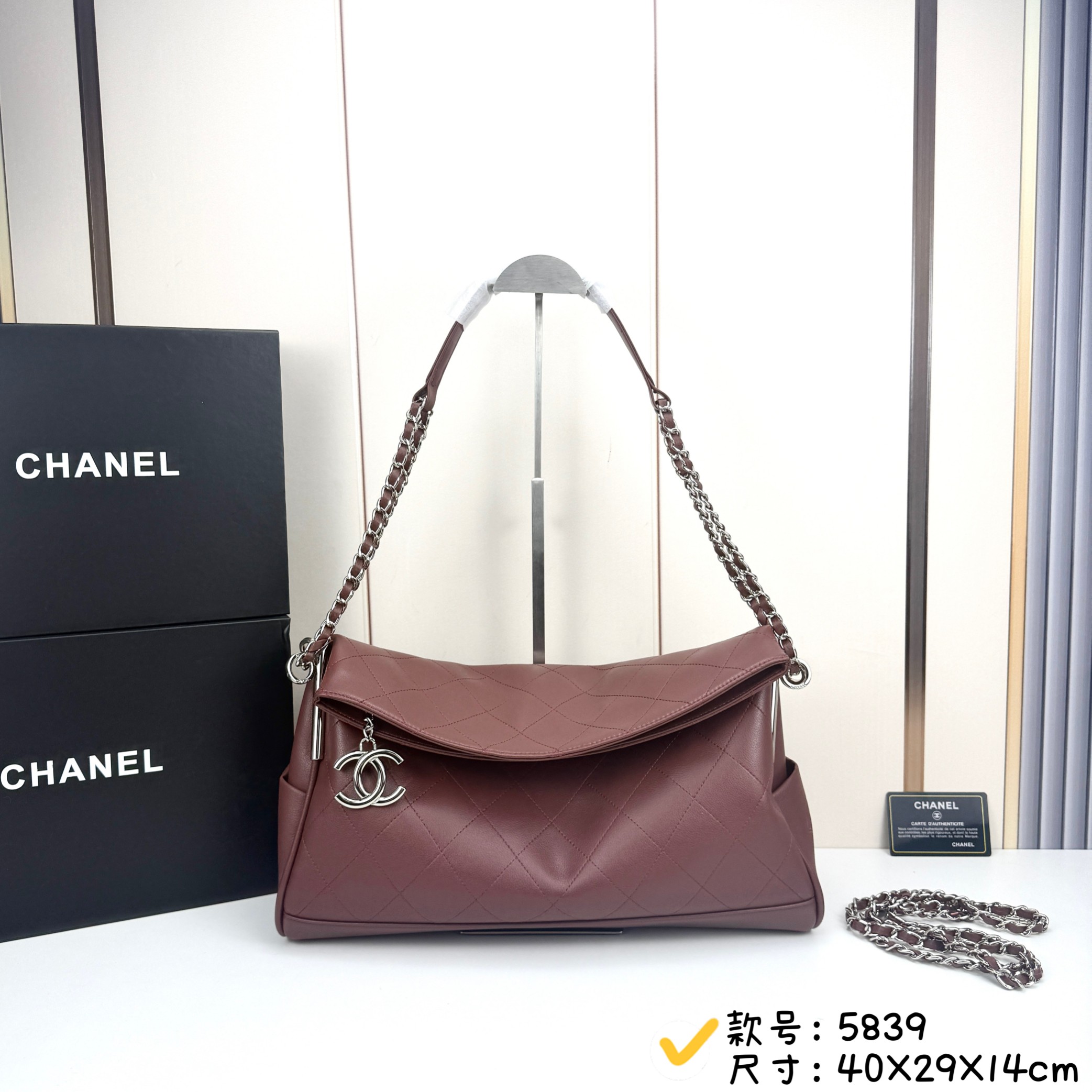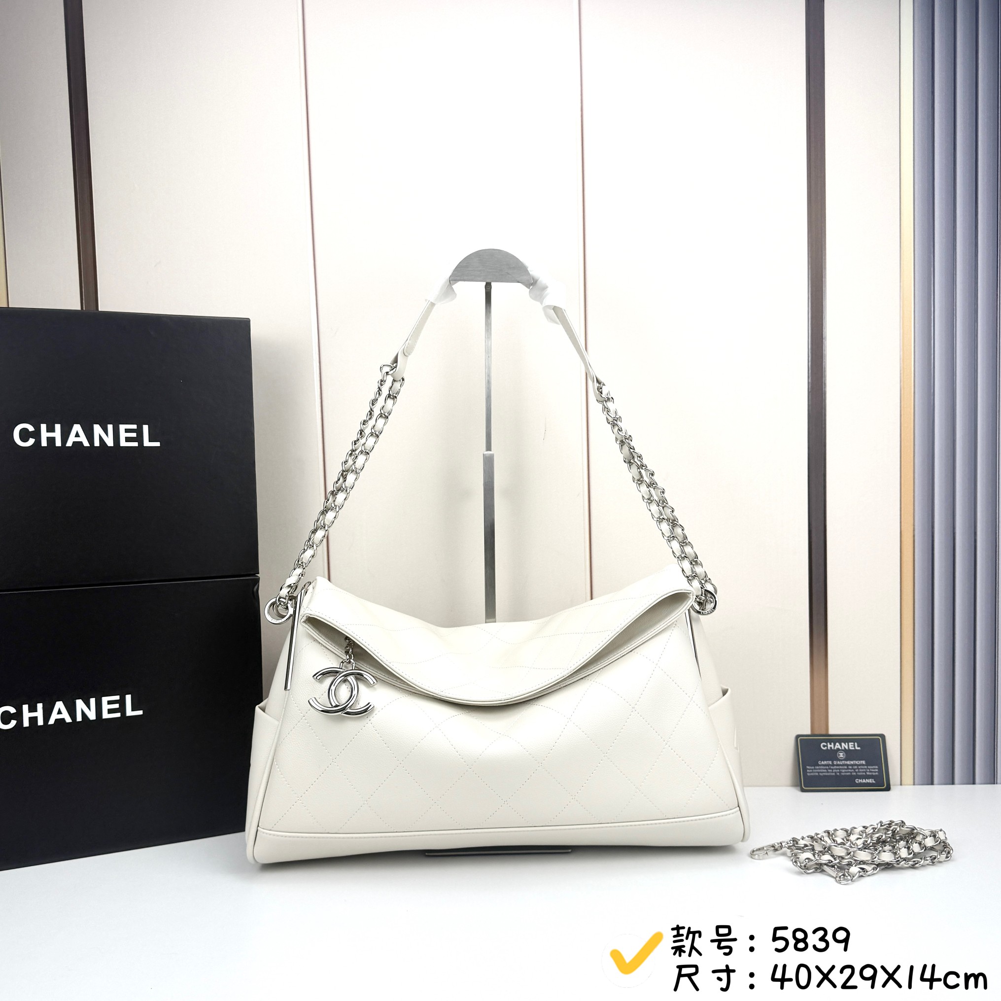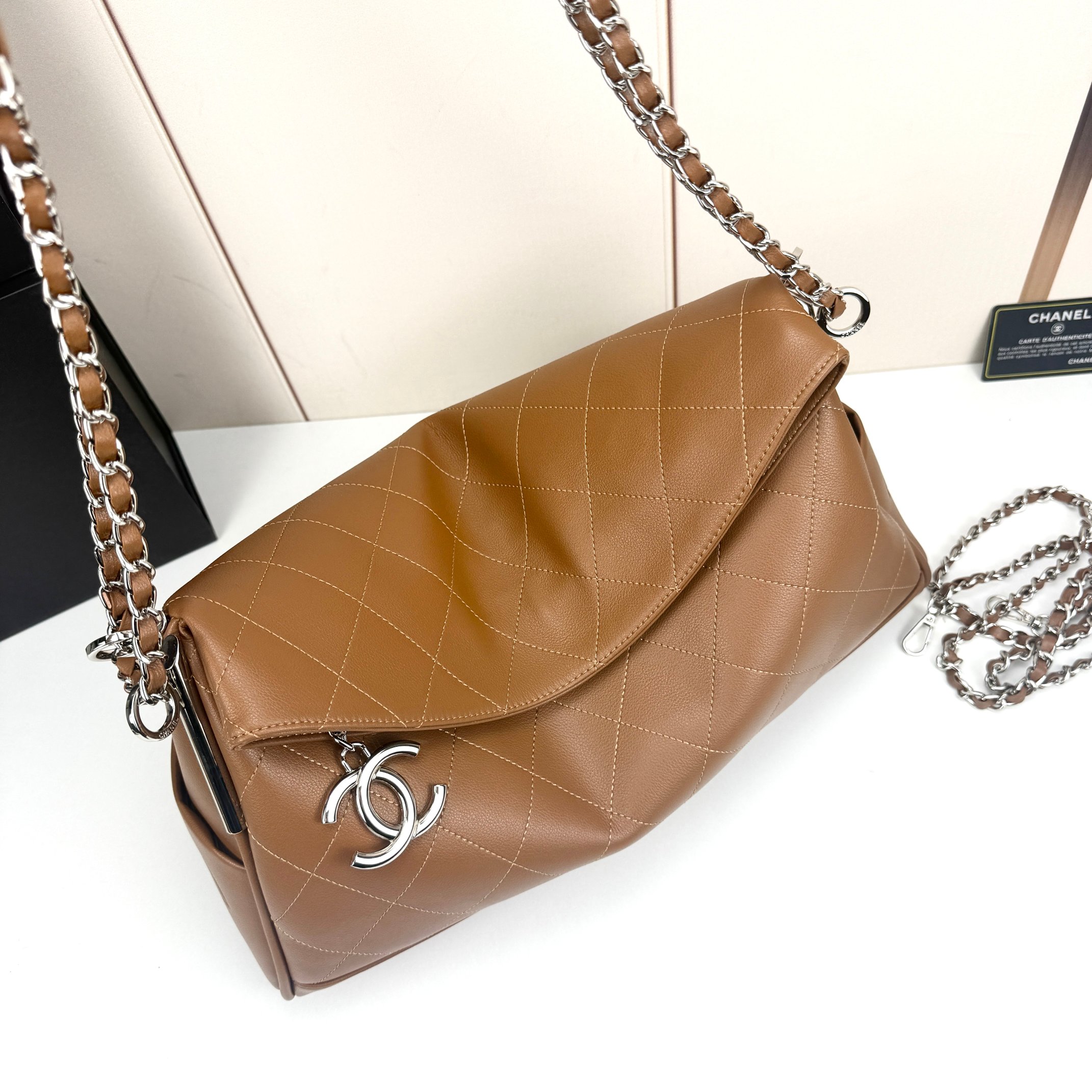 The set also includes an additional detachable chain strap for versatile styling, and the signature Chanel black packaging.