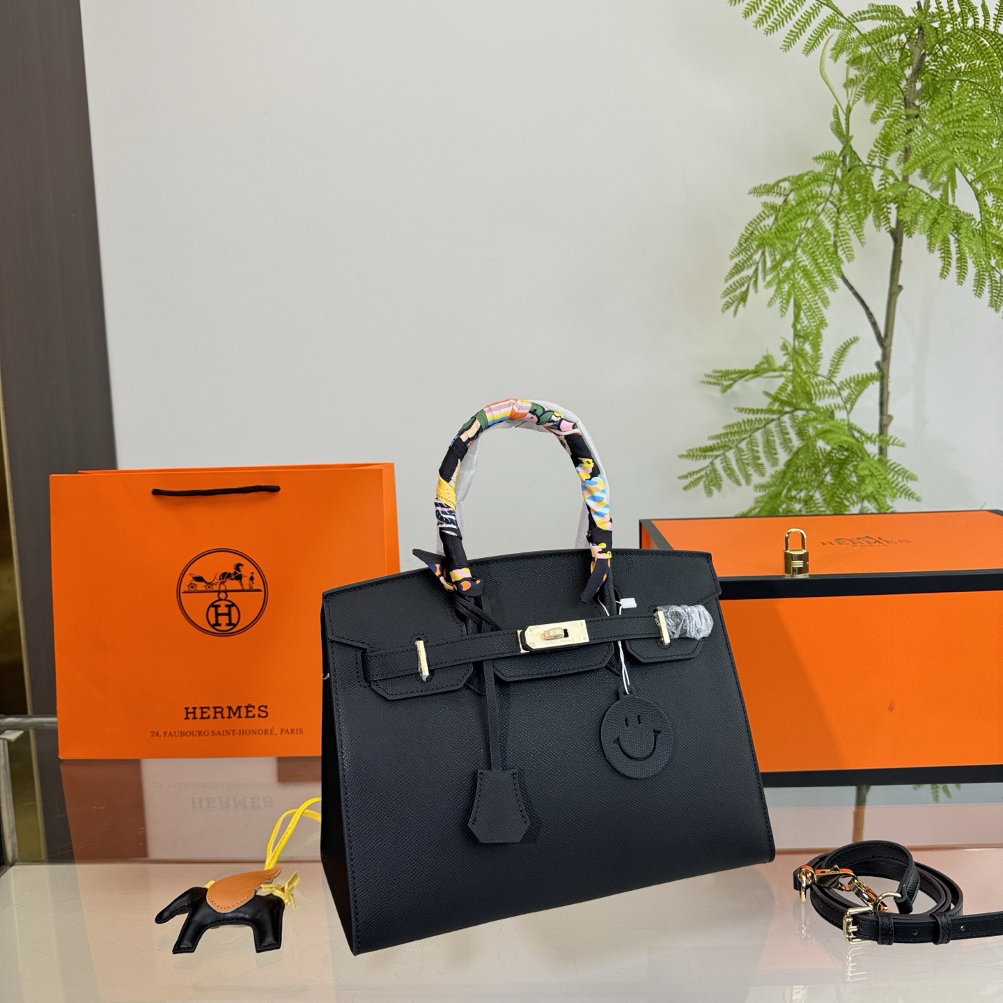 It features the brand’s iconic gold – toned “YSL” logo prominently displayed on the front. The bag has a structured design with wide top handles, and its dimensions are 28*28cm.