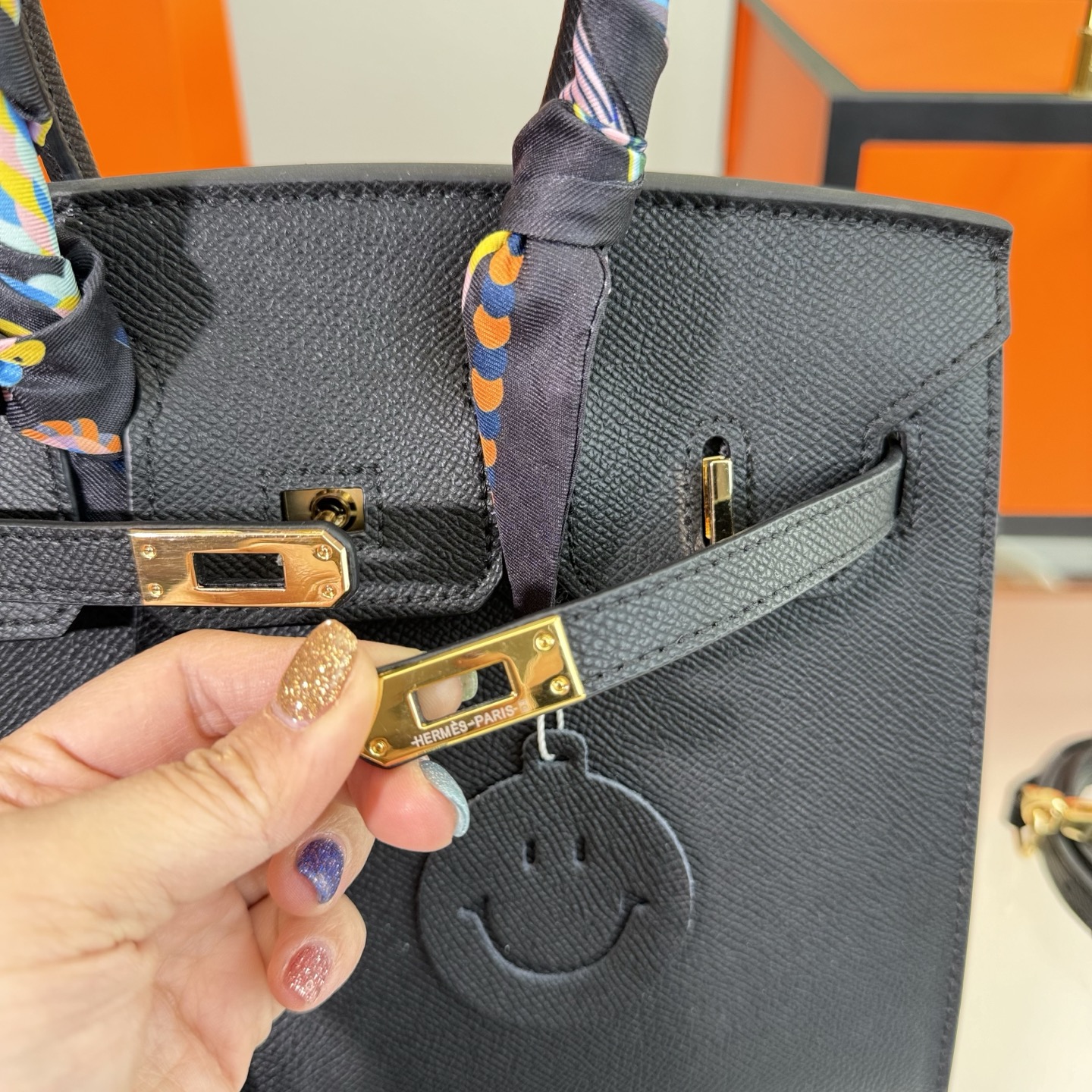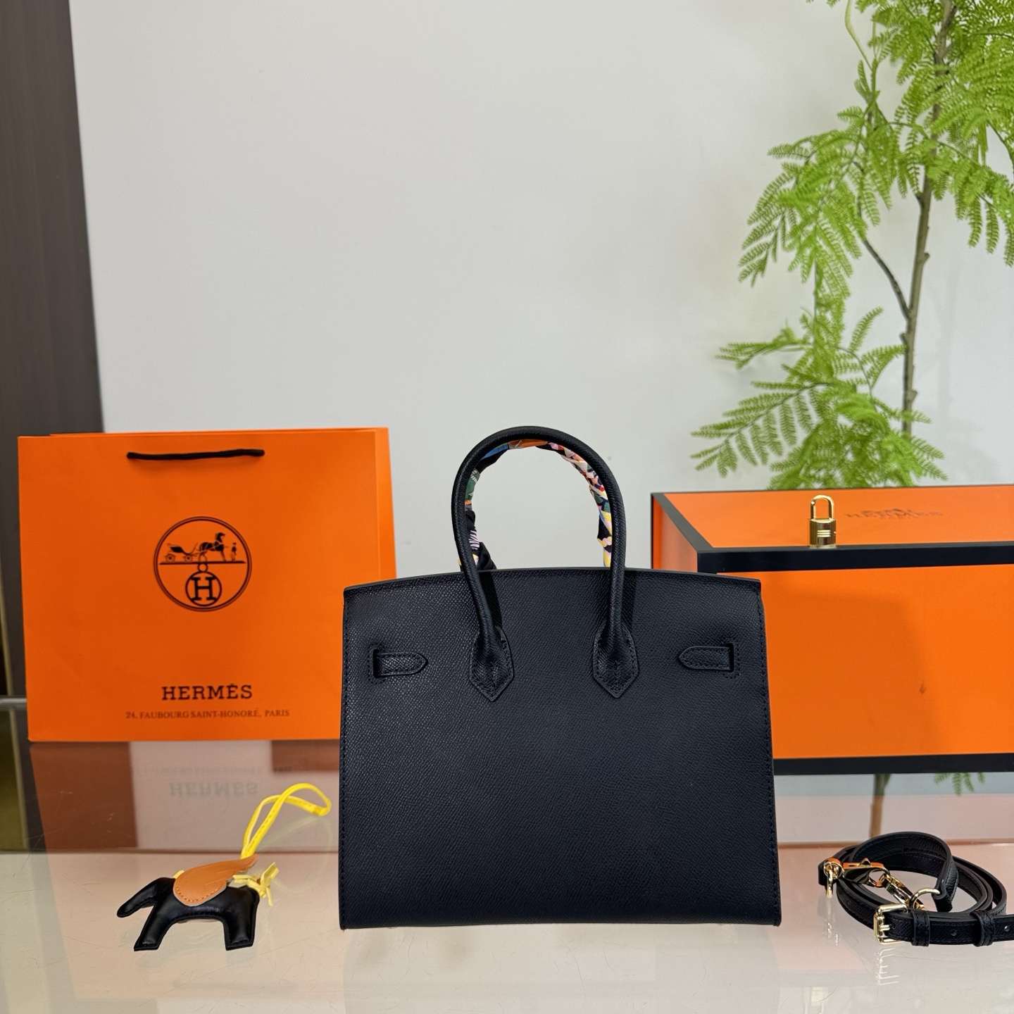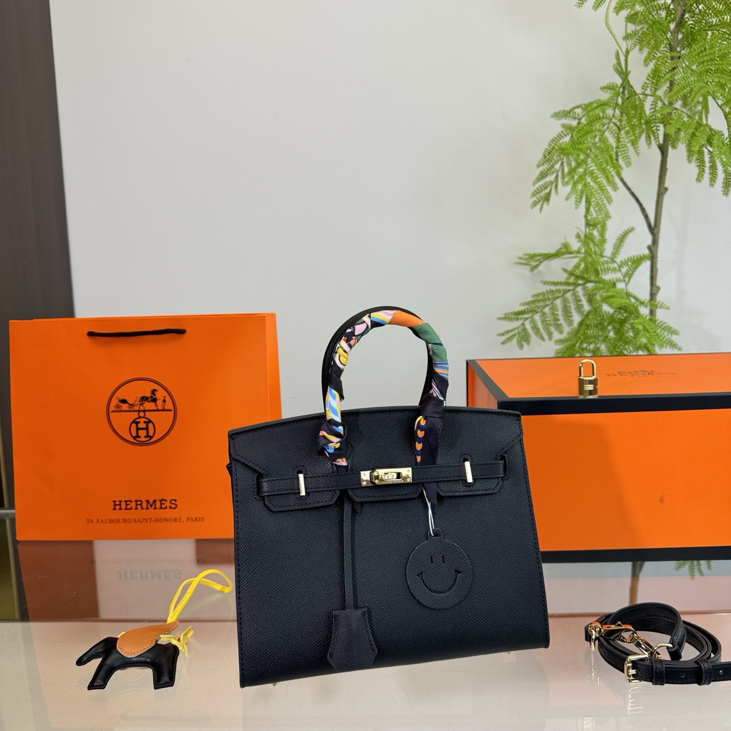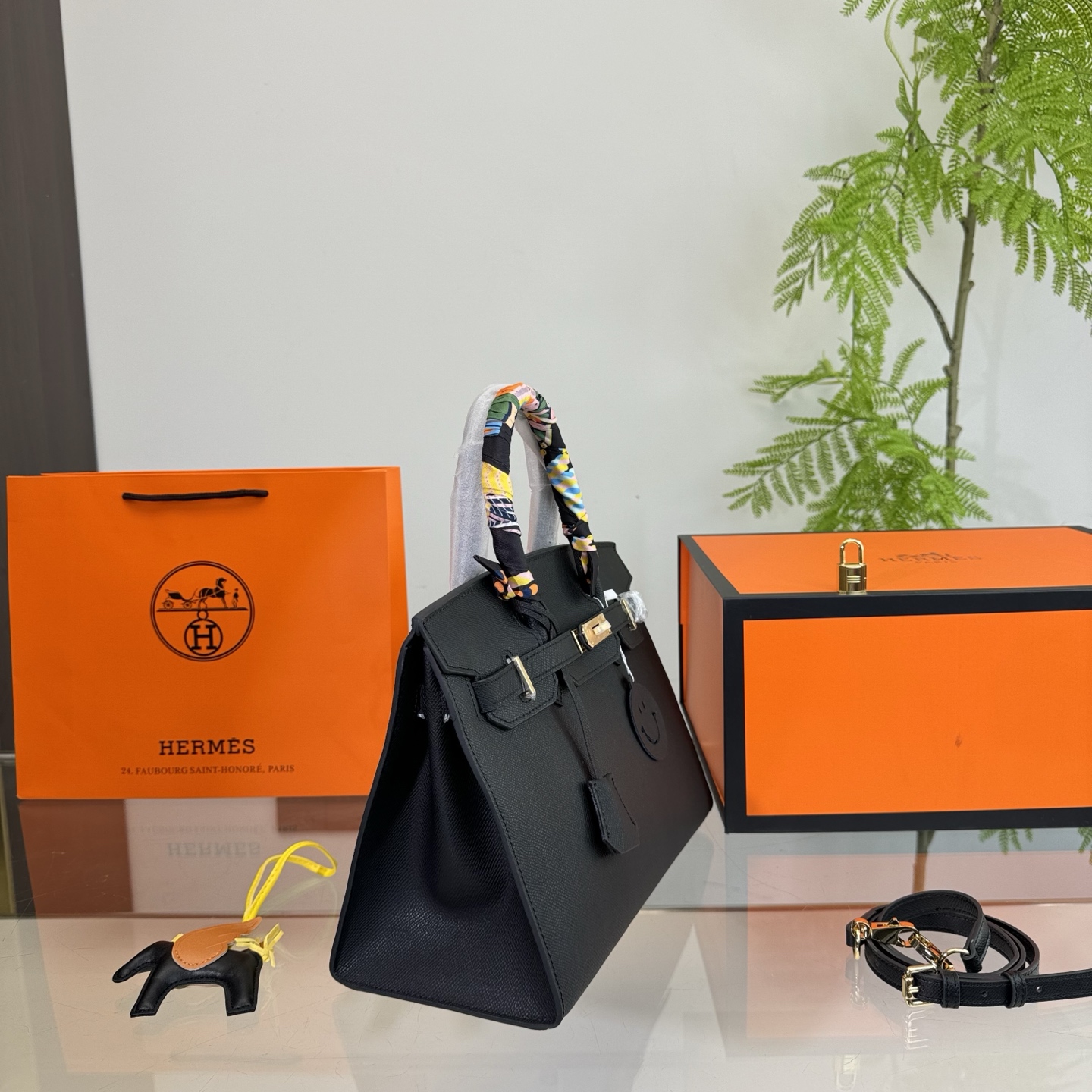 Presented with Saint Laurent’s signature black packaging, including a shopping bag and a box, this piece embodies the brand’s edgy yet sophisticated aesthetic, making it a versatile accessory suitable for both everyday use and special occasions.