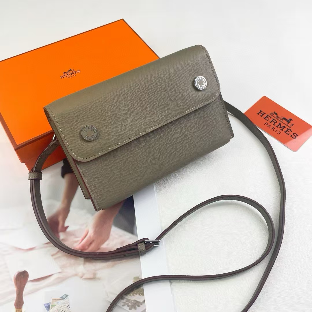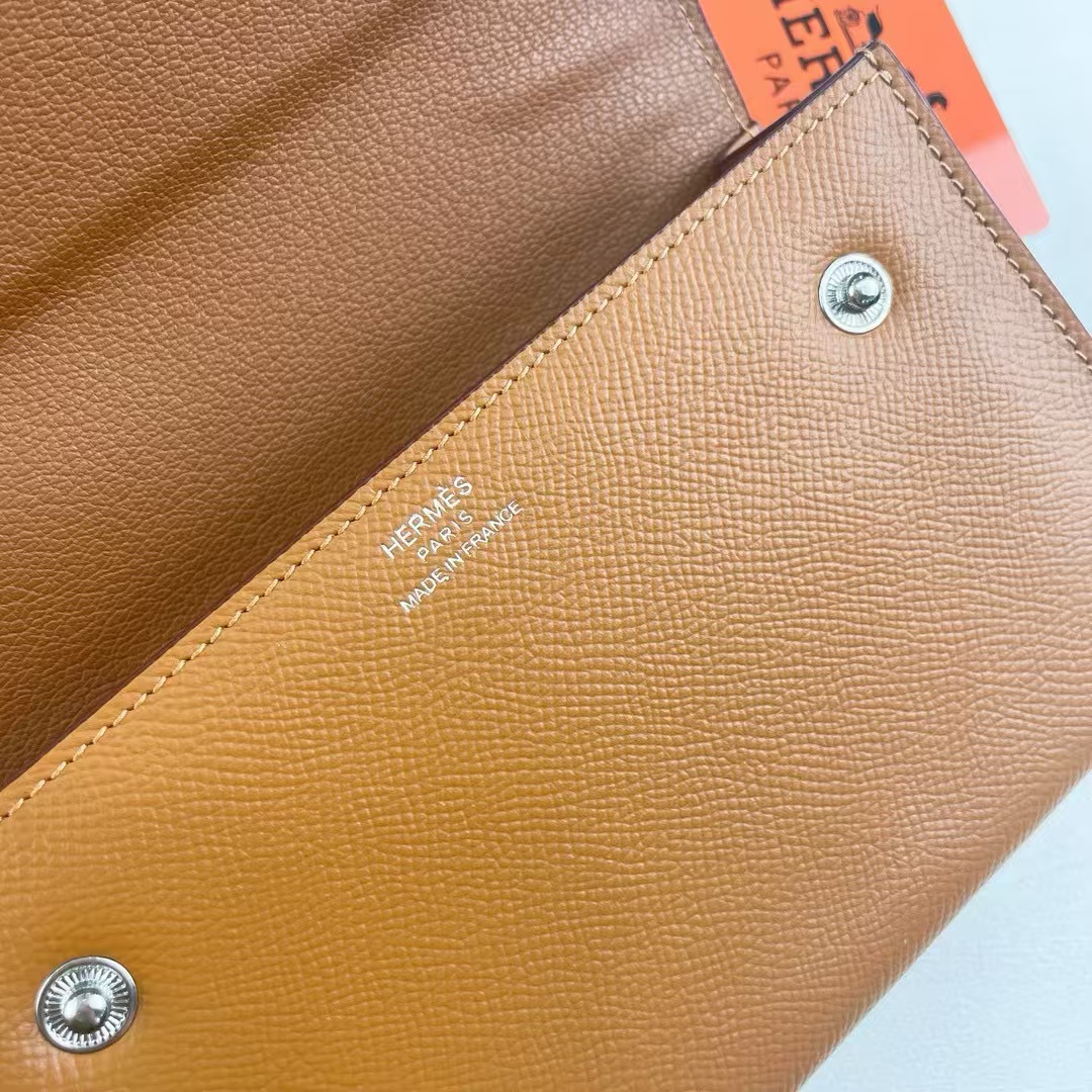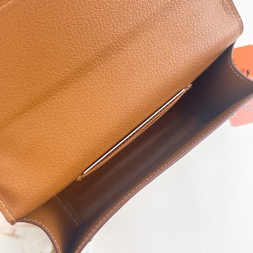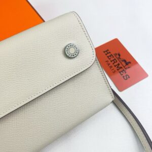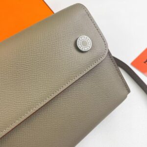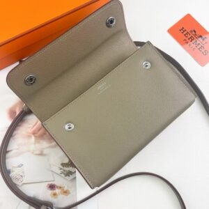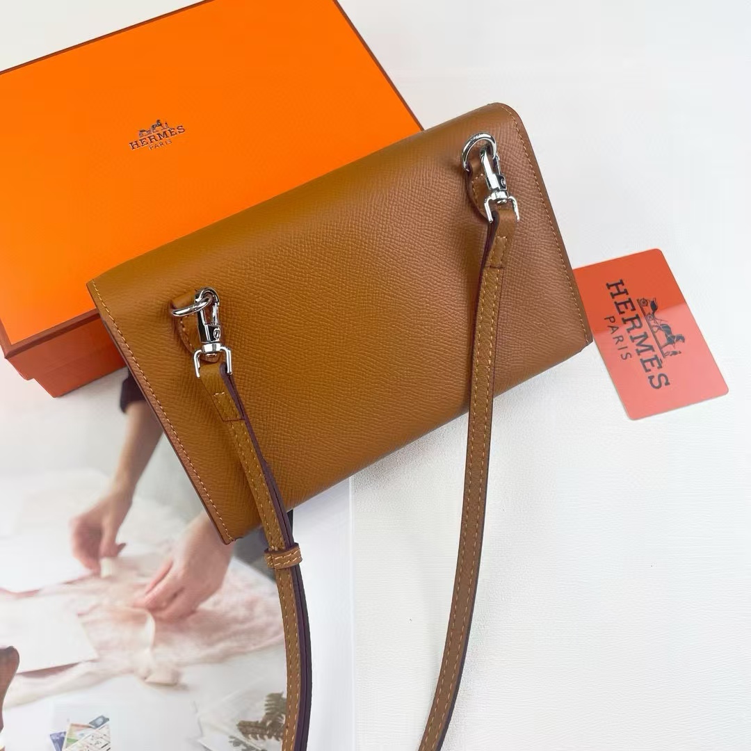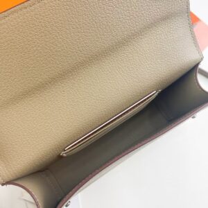 It features the brand’s signature turn – lock hardware embossed with “HERMÈS” on the front flap.