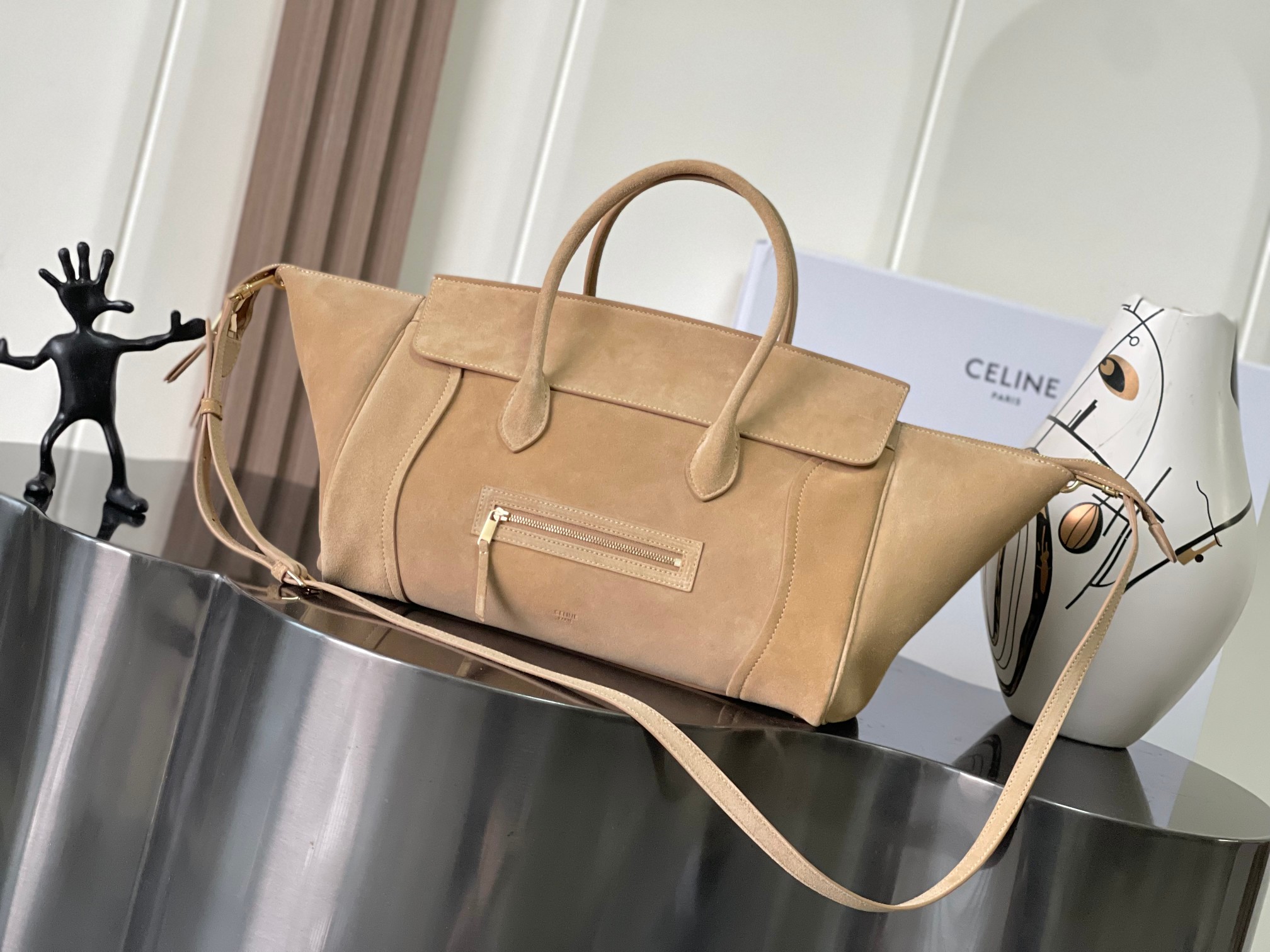 This Celine Luggage tote (available in soft tan suede or rich brown leather) is a iconic modern luxury staple, defined by its structured-yet-sleek “winged” silhouette.