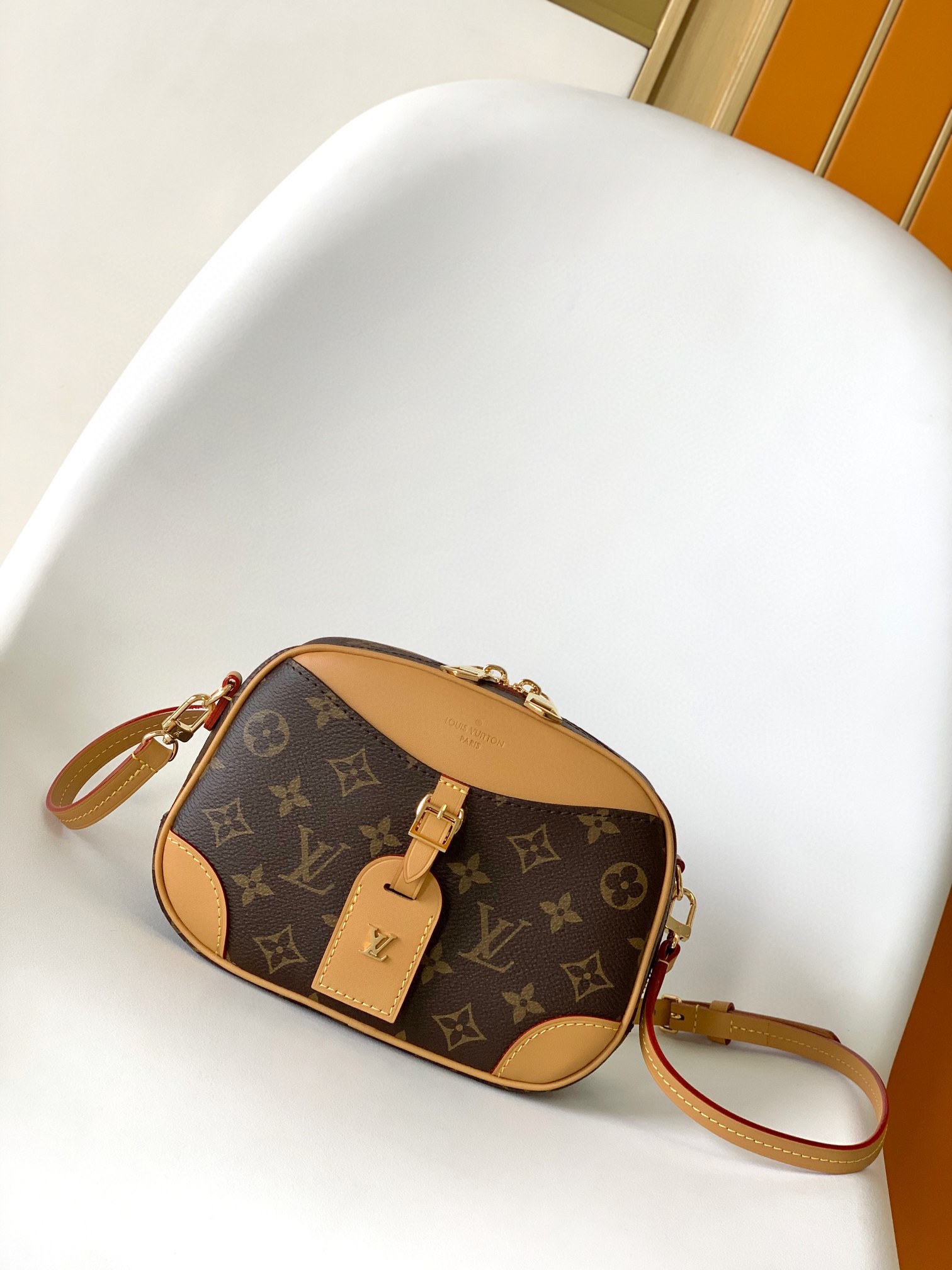 • Signature details: Reinforced leather corners, contrast stitching, and “LOUIS VUITTON PARIS” embossing