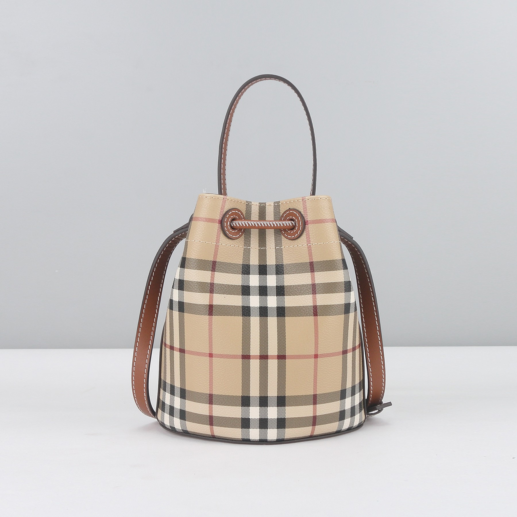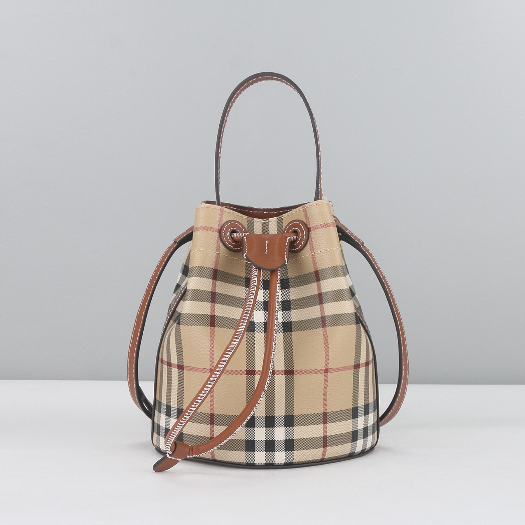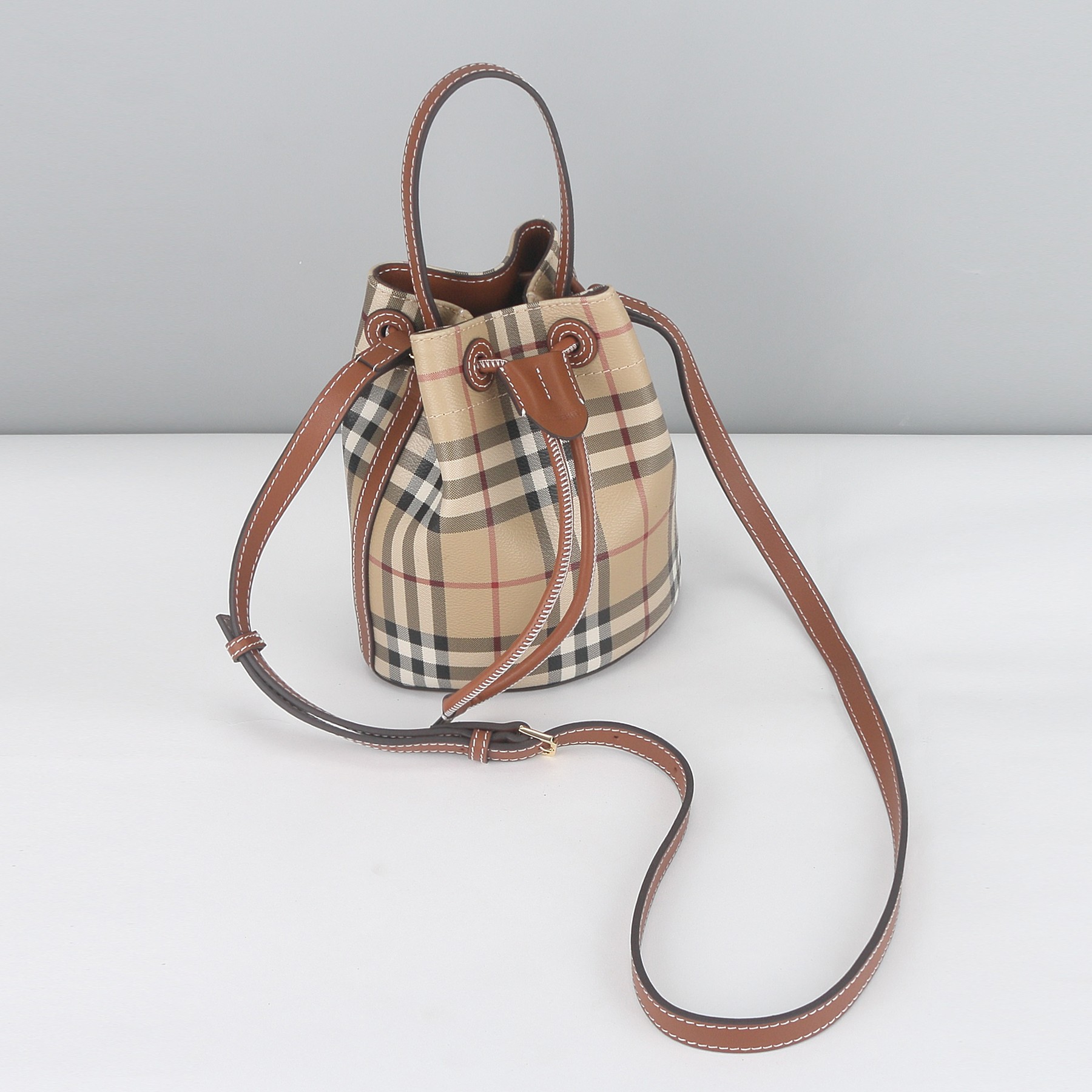 Mini Vintage Check Bucket Bag – Iconic Plaid Canvas with Leather Trim (Compact Everyday Luxury)