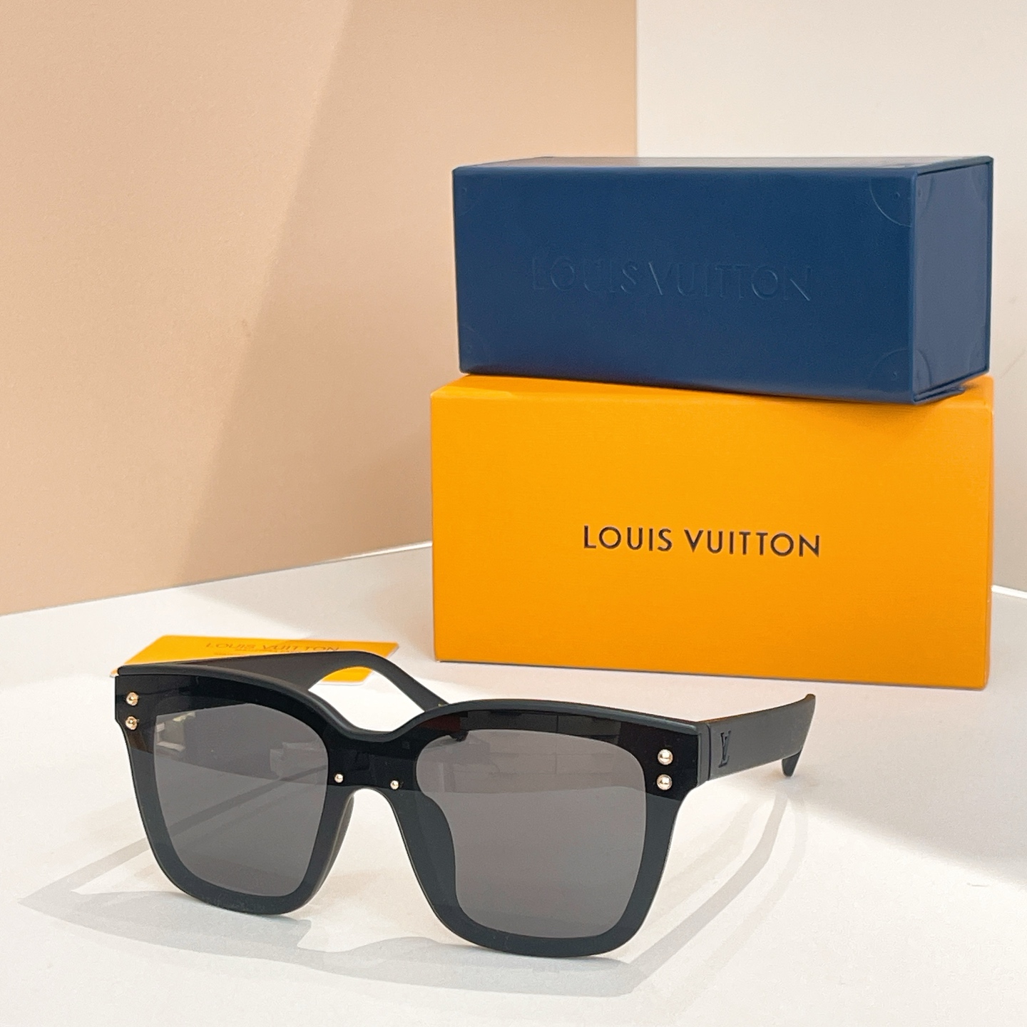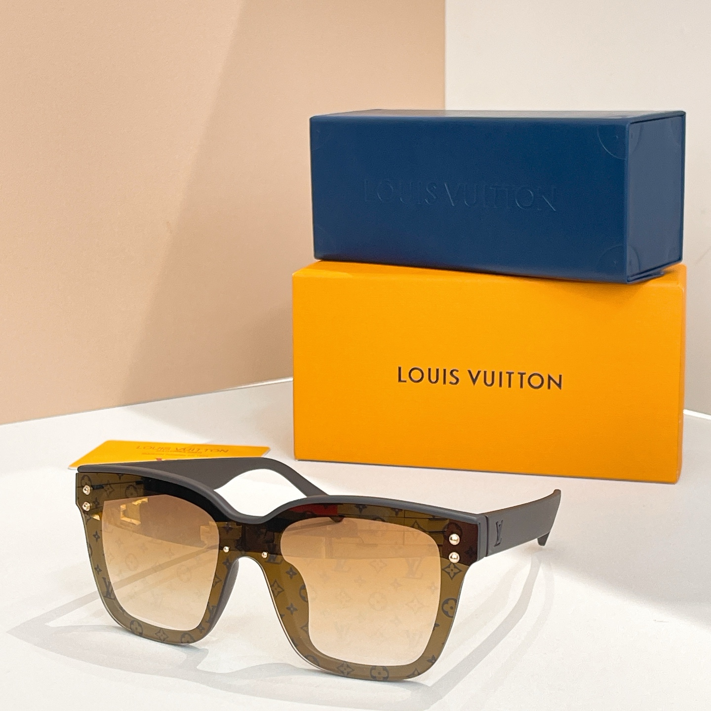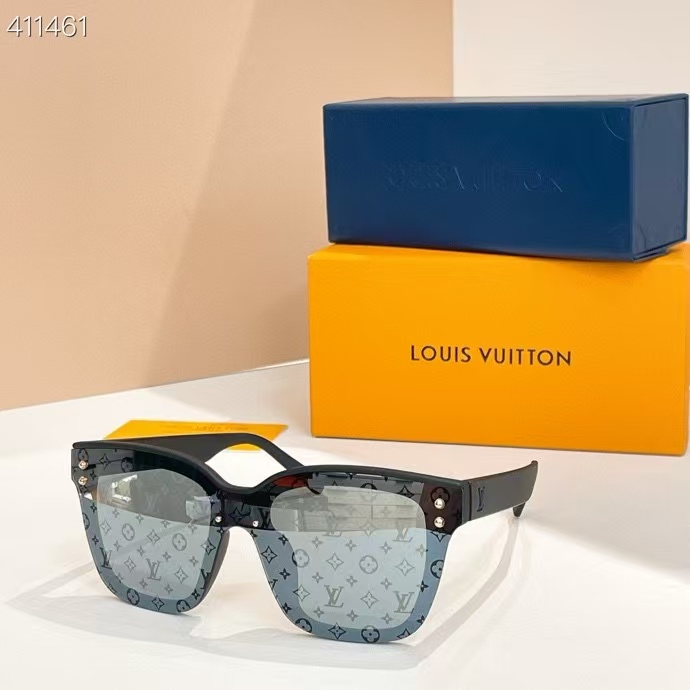 • Available in a variety of styles, including options with solid-colored frames (such as black, white, blue, and tortoiseshell) and frames adorned with the LV monogram, the lenses come in tints like gray, brown, gradient, and mirrored finishes.