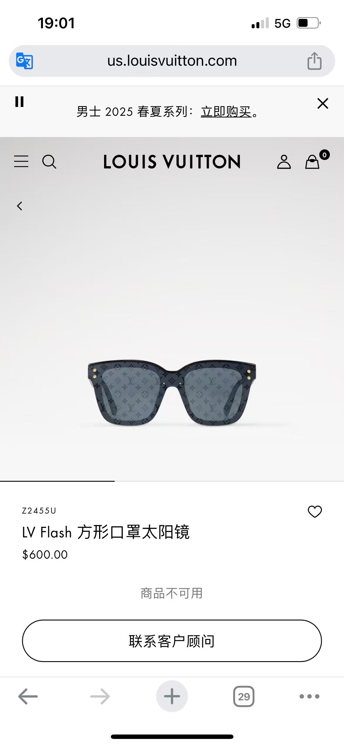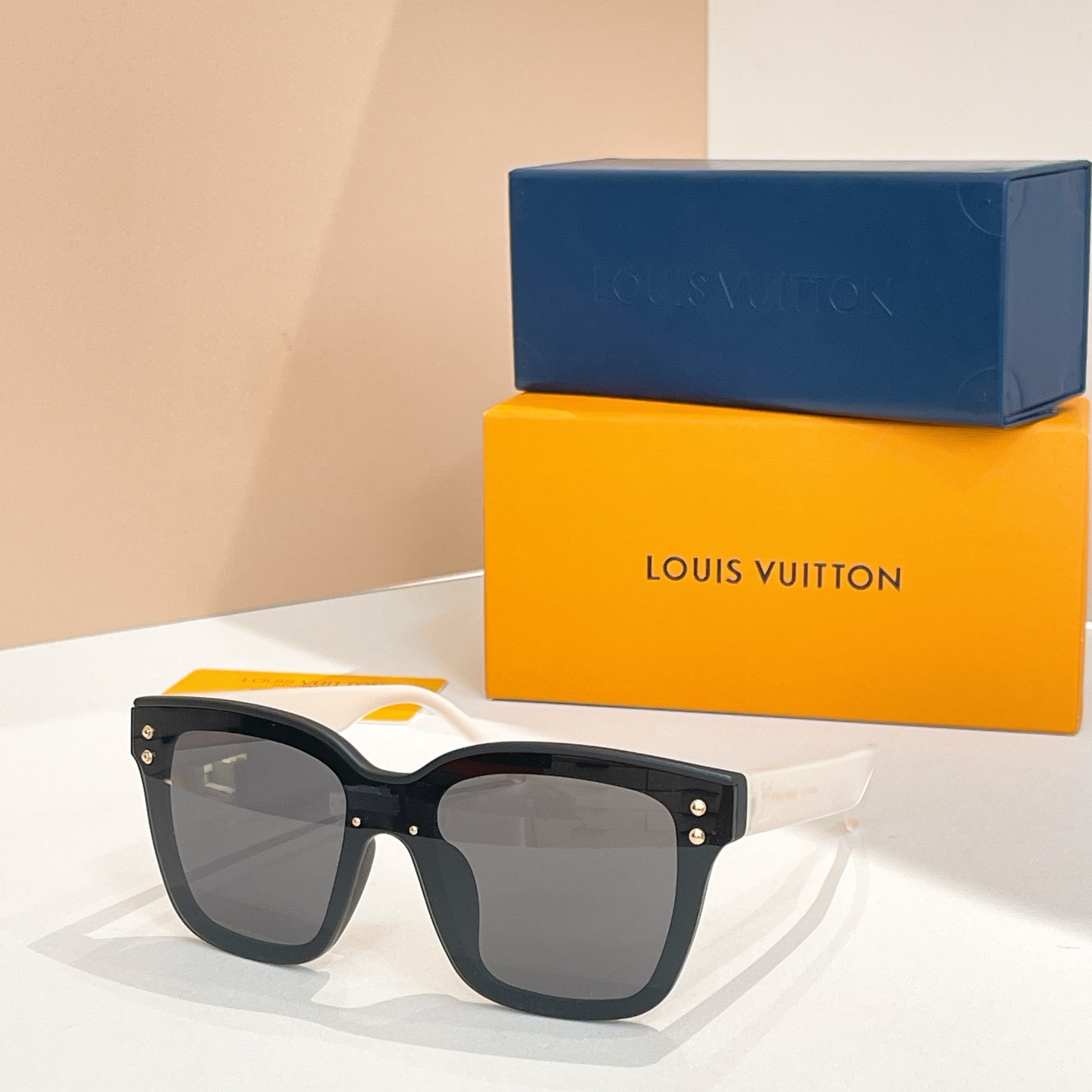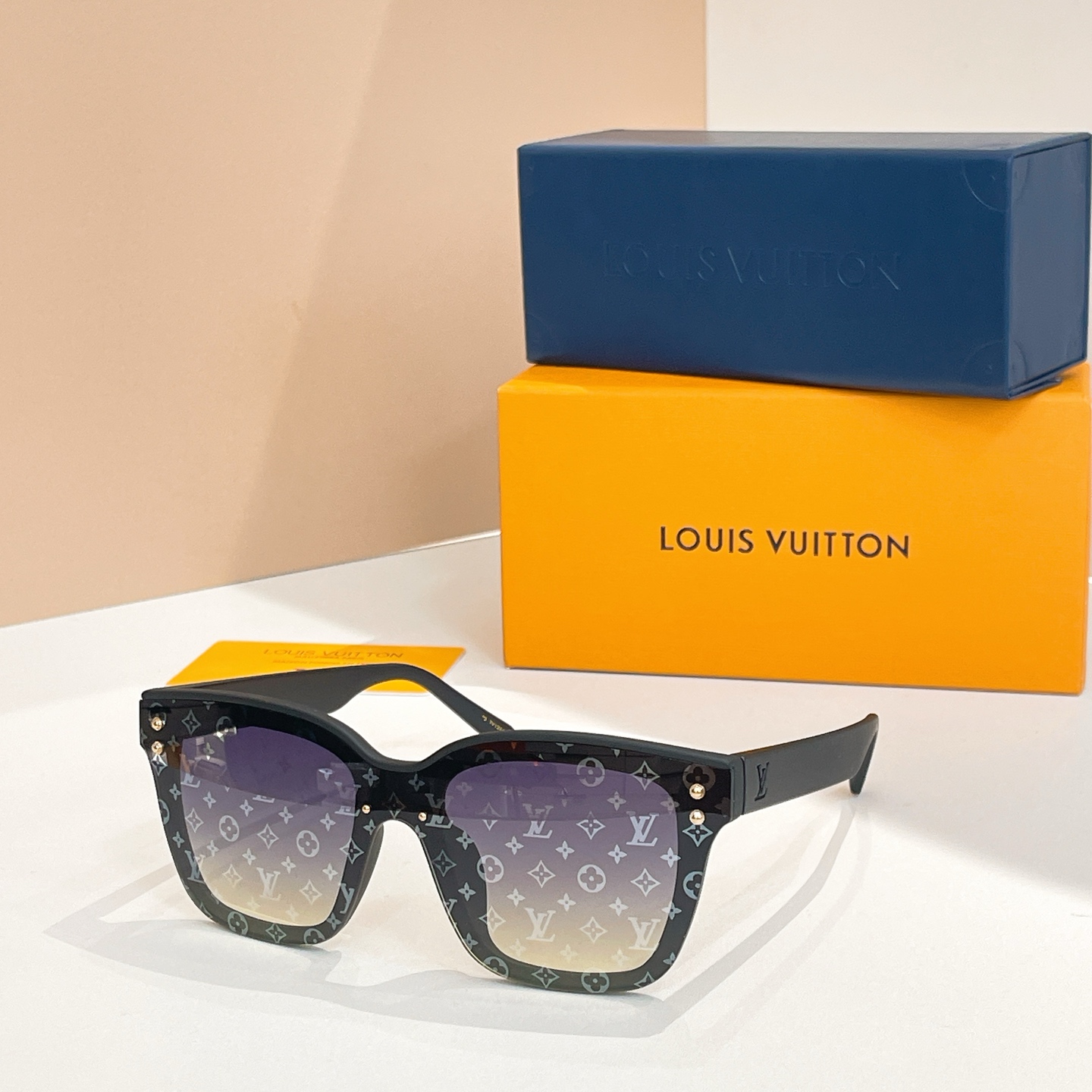 • Available in a variety of styles, including options with solid-colored frames (such as black, white, blue, and tortoiseshell) and frames adorned with the LV monogram, the lenses come in tints like gray, brown, gradient, and mirrored finishes.