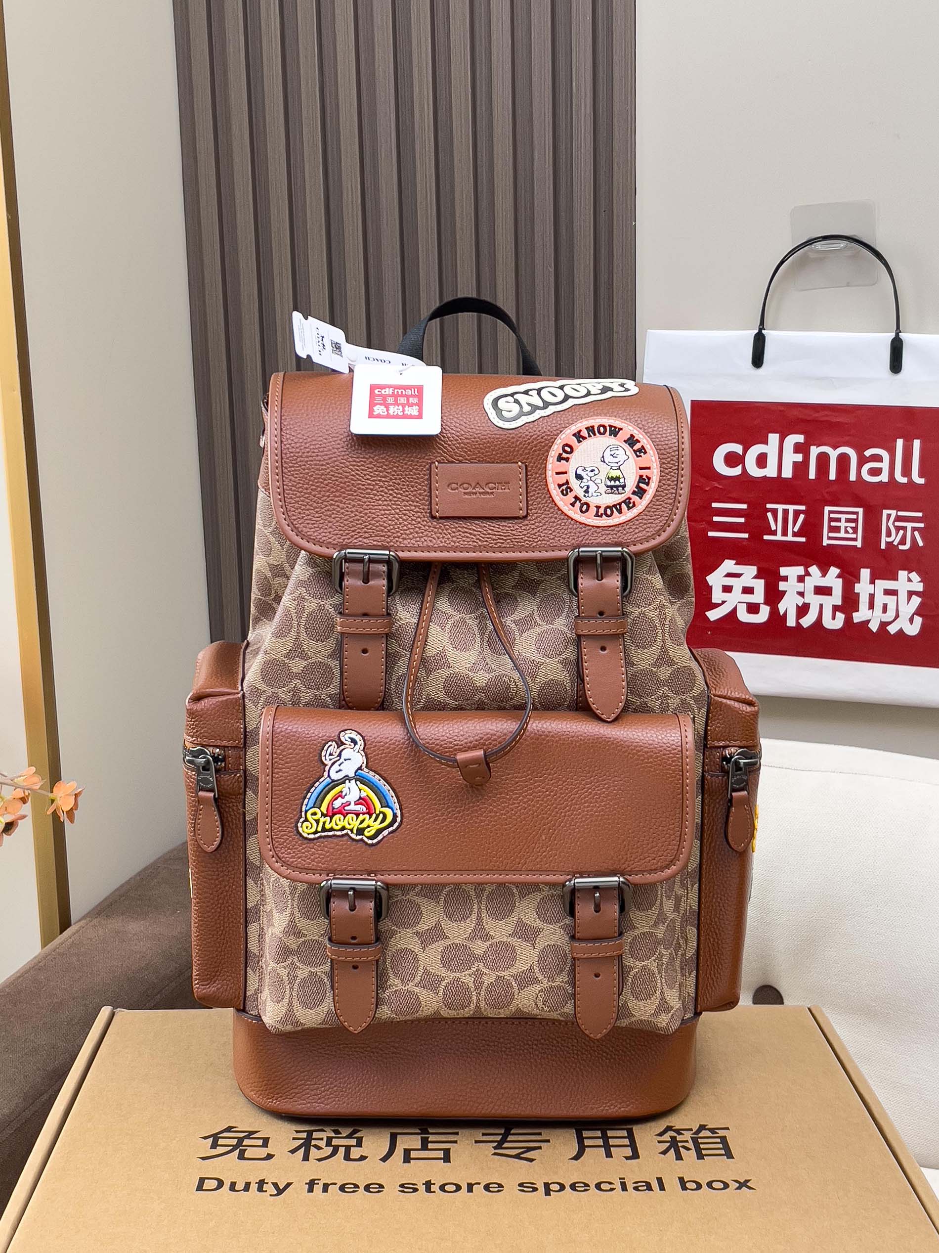 It comes with padded, adjustable shoulder straps with mesh backing for comfort, and a top handle for easy carrying. The set includes signature Coach packaging, presented in a duty-free store gift box.