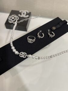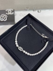 This piece combines the timeless elegance of pearls with Chanel’s iconic branding and luxurious crystal detailing, making it a sophisticated accessory ideal for formal events or adding a touch of glamour to everyday wear.