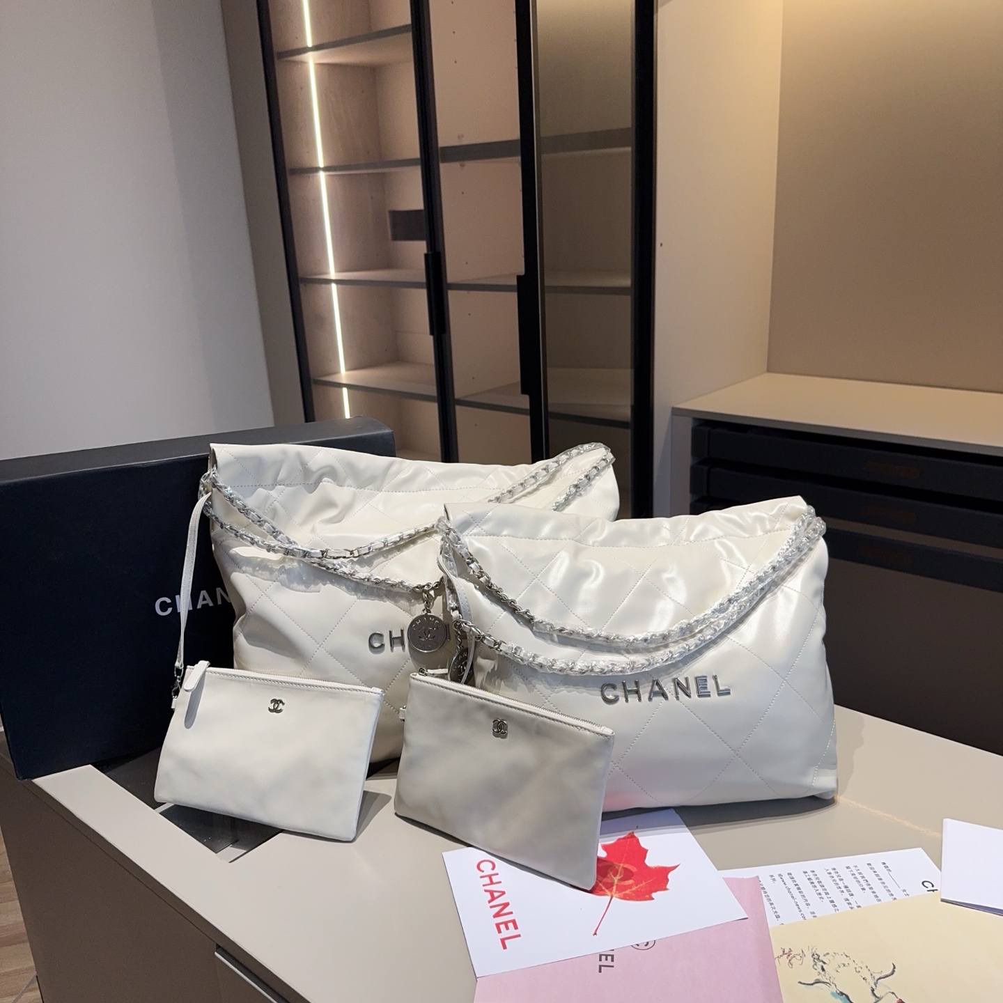 This set embodies Chanel’s classic elegance and attention to detail, making it a luxurious and practical accessory collection for everyday use or special occasions.