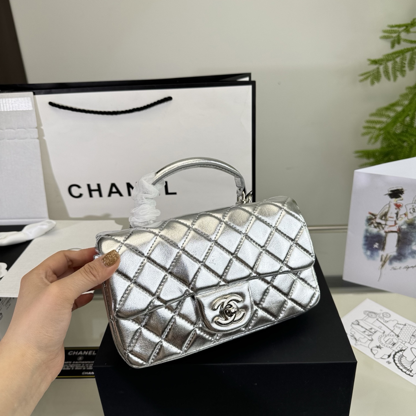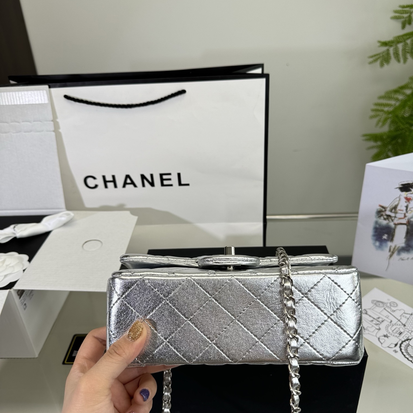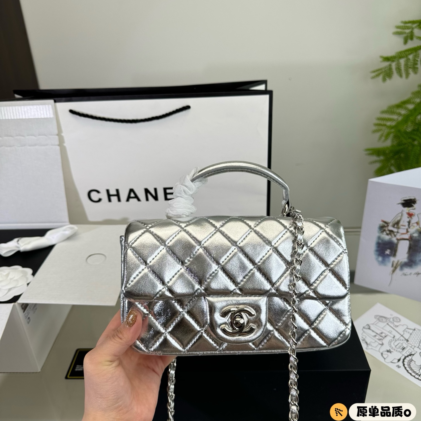 The product in the pictures is a stylish handbag from Chanel, available in metallic silver and black.