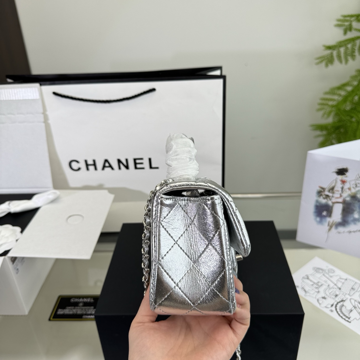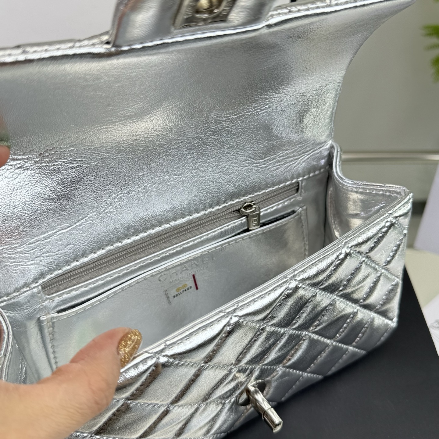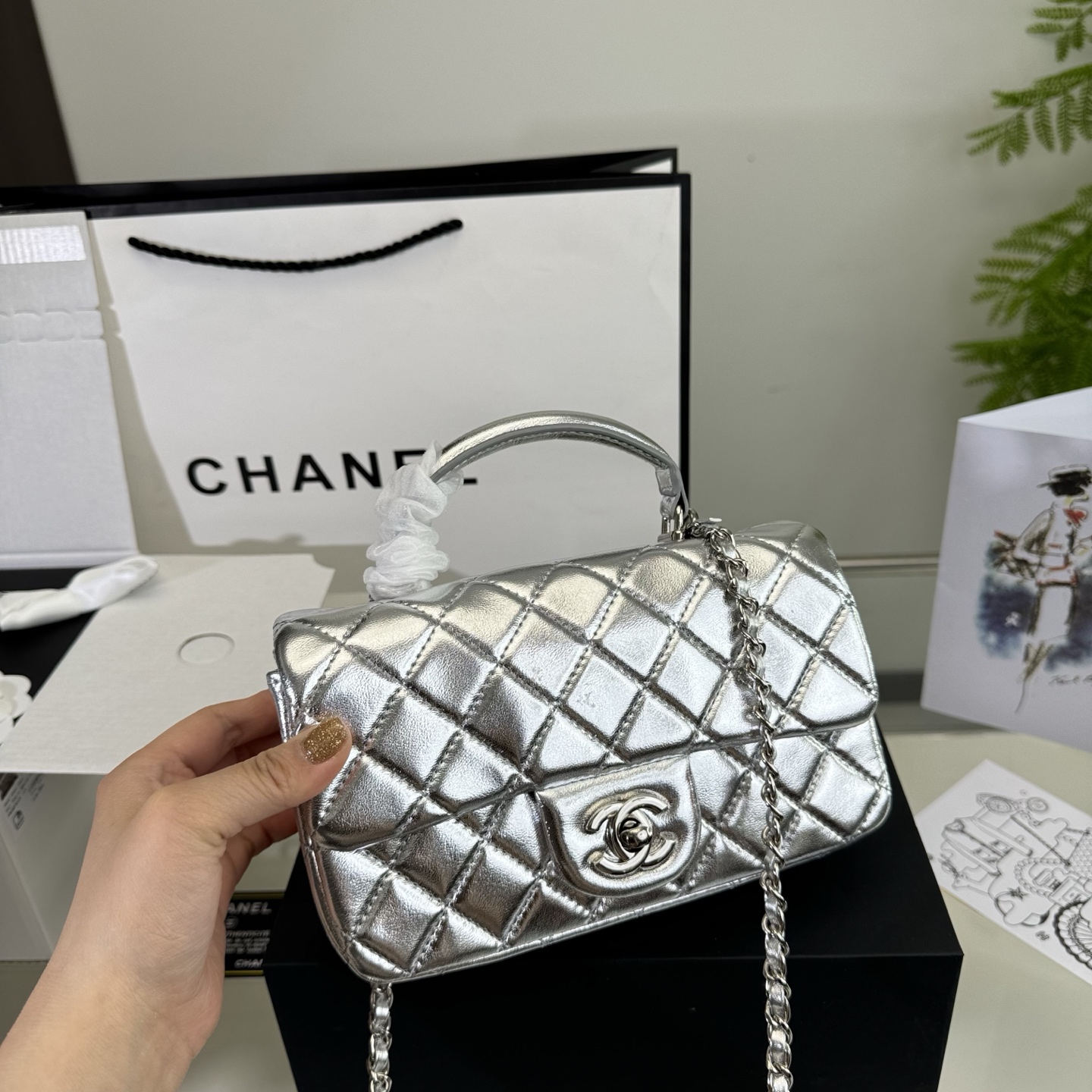 The product in the pictures is a stylish handbag from Chanel, available in metallic silver and black.