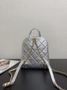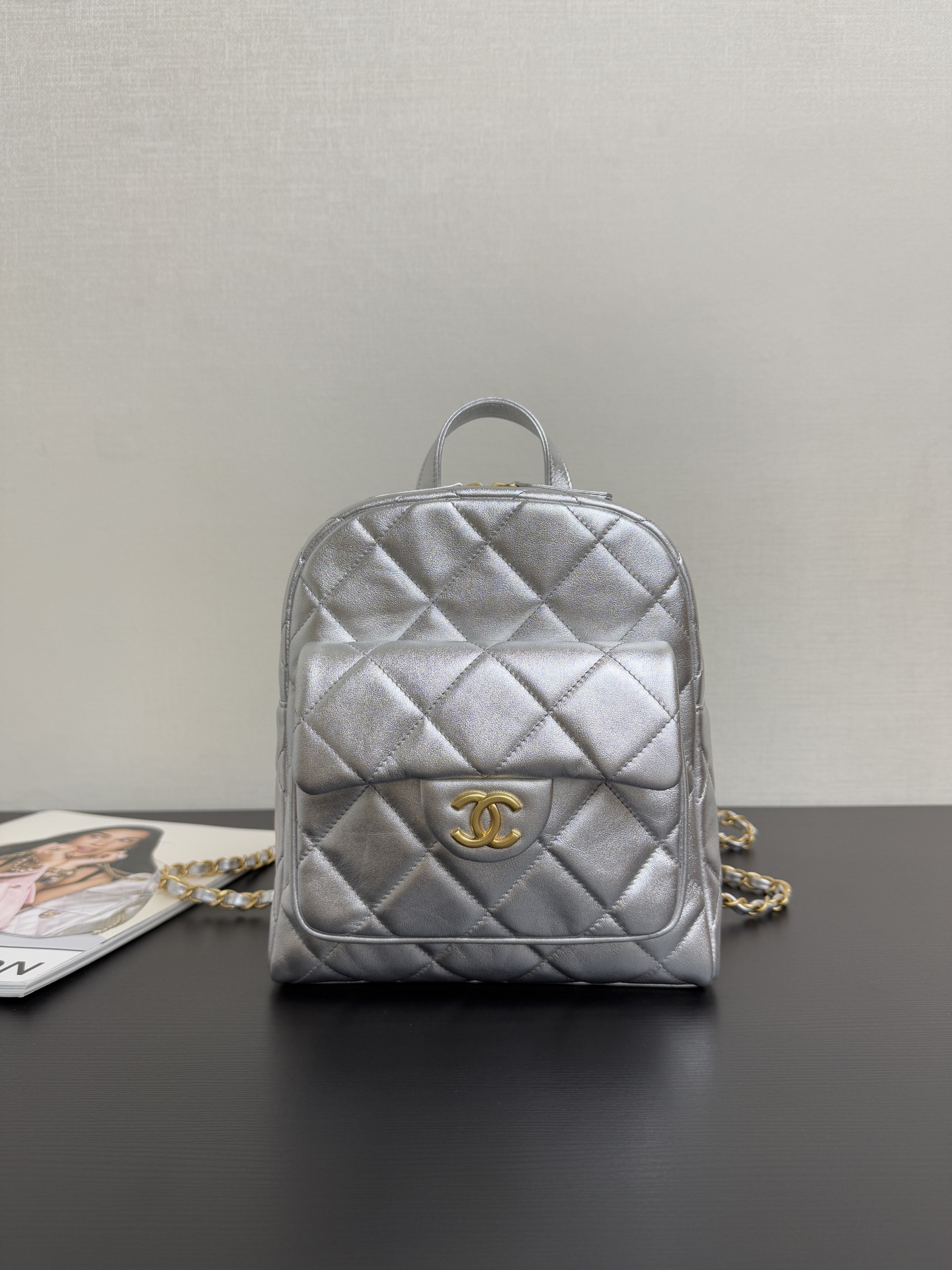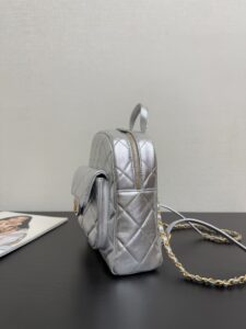 Elevate your everyday style with this exquisite CHANEL mini backpack, available in two iconic colorways: classic black caviar leather (renowned for its scratch-resistant pebbled texture) and stunning metallic silver leather (boasting a luminous, high-shine finish).