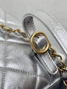 Quilted Mini Backpack – Black Caviar/Metallic Silver Leather with Gold Hardware
