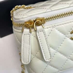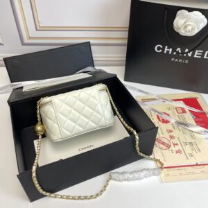 These are Chanel quilted mini crossbody bags available in two timeless colors: crisp white and iconic black.