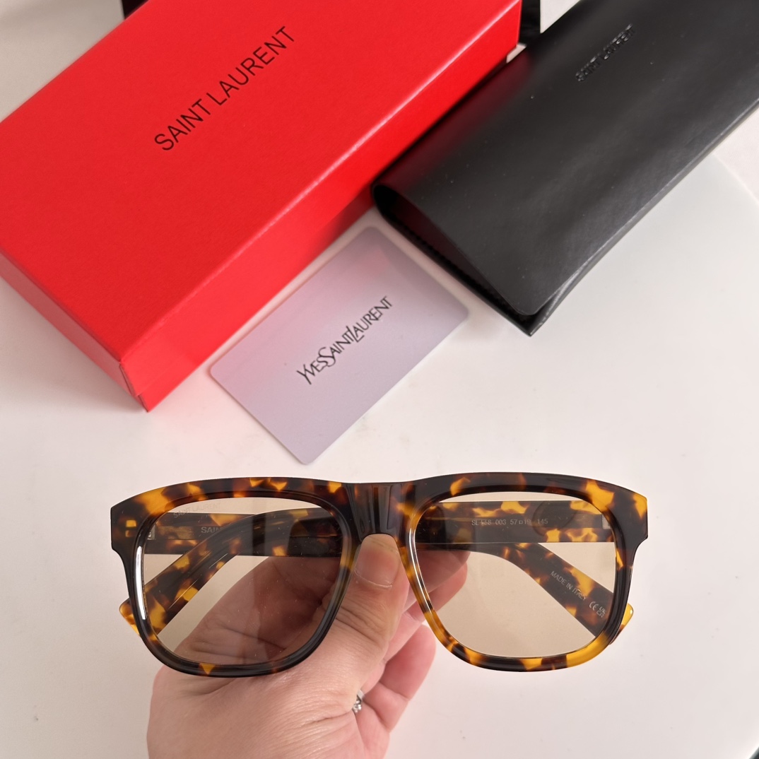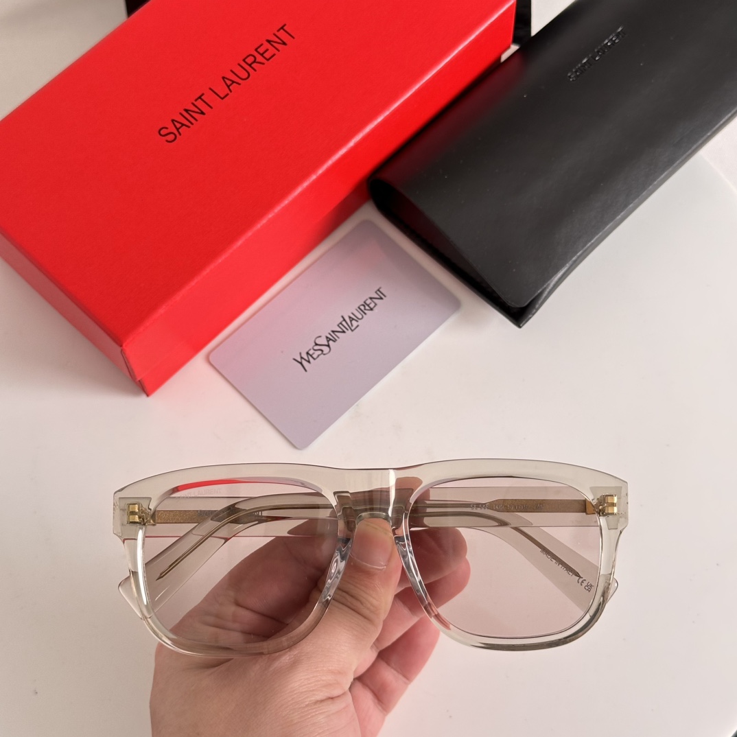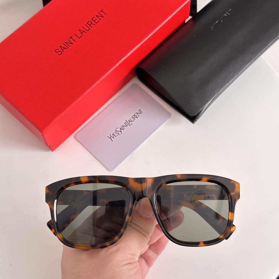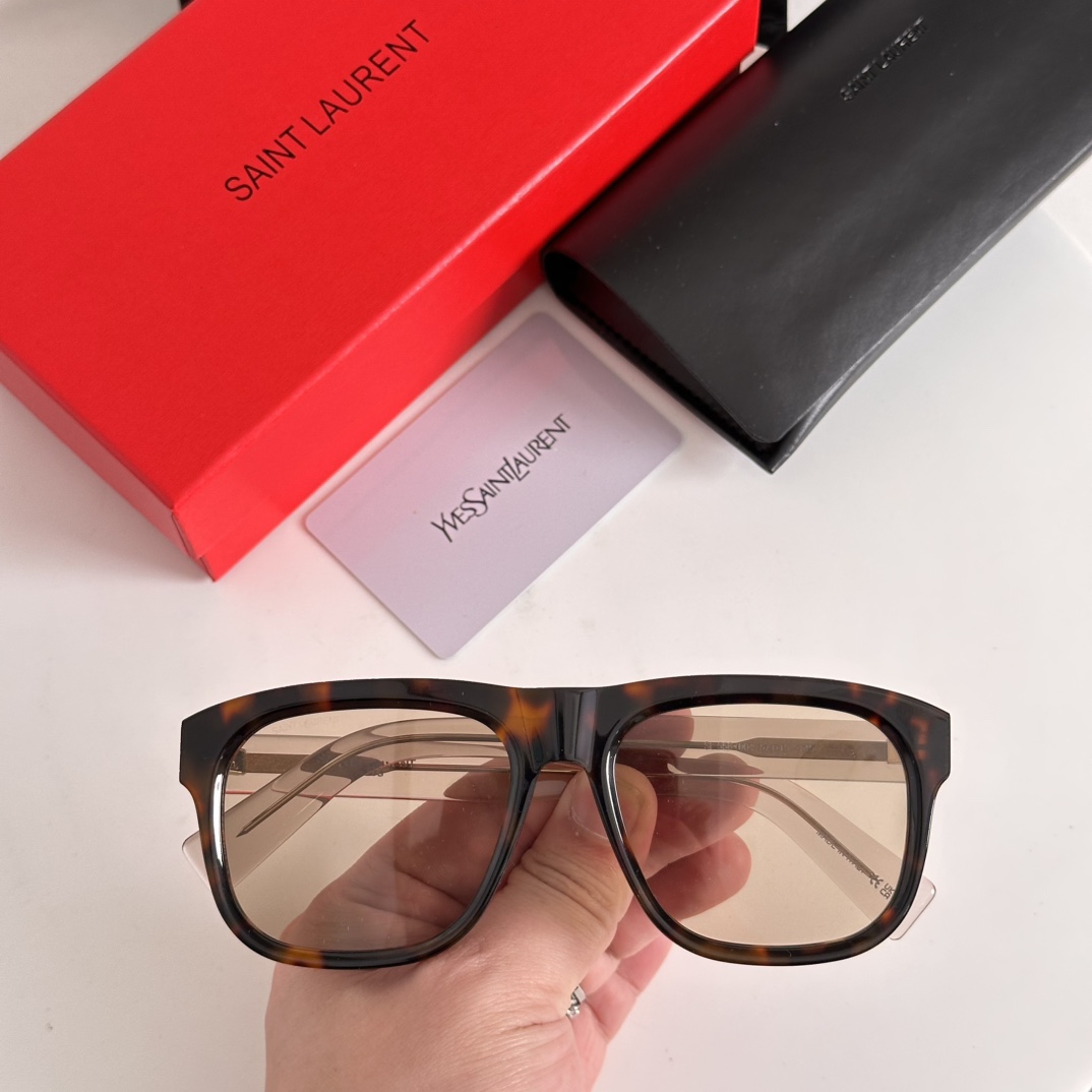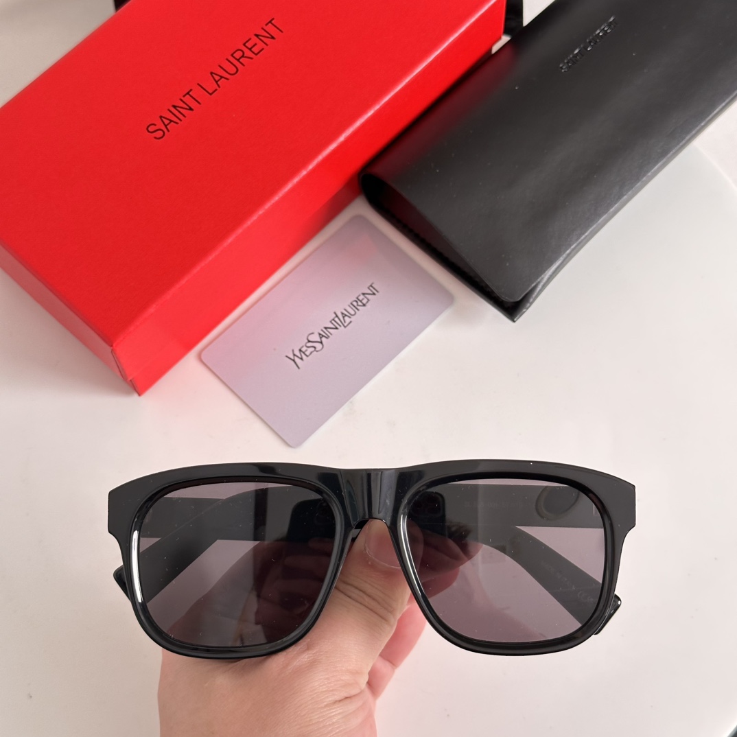 - Presented with Saint Laurent’s signature red packaging box, black case, and brand card, these sunglasses exemplify the brand’s commitment to premium craftsmanship and timeless design.